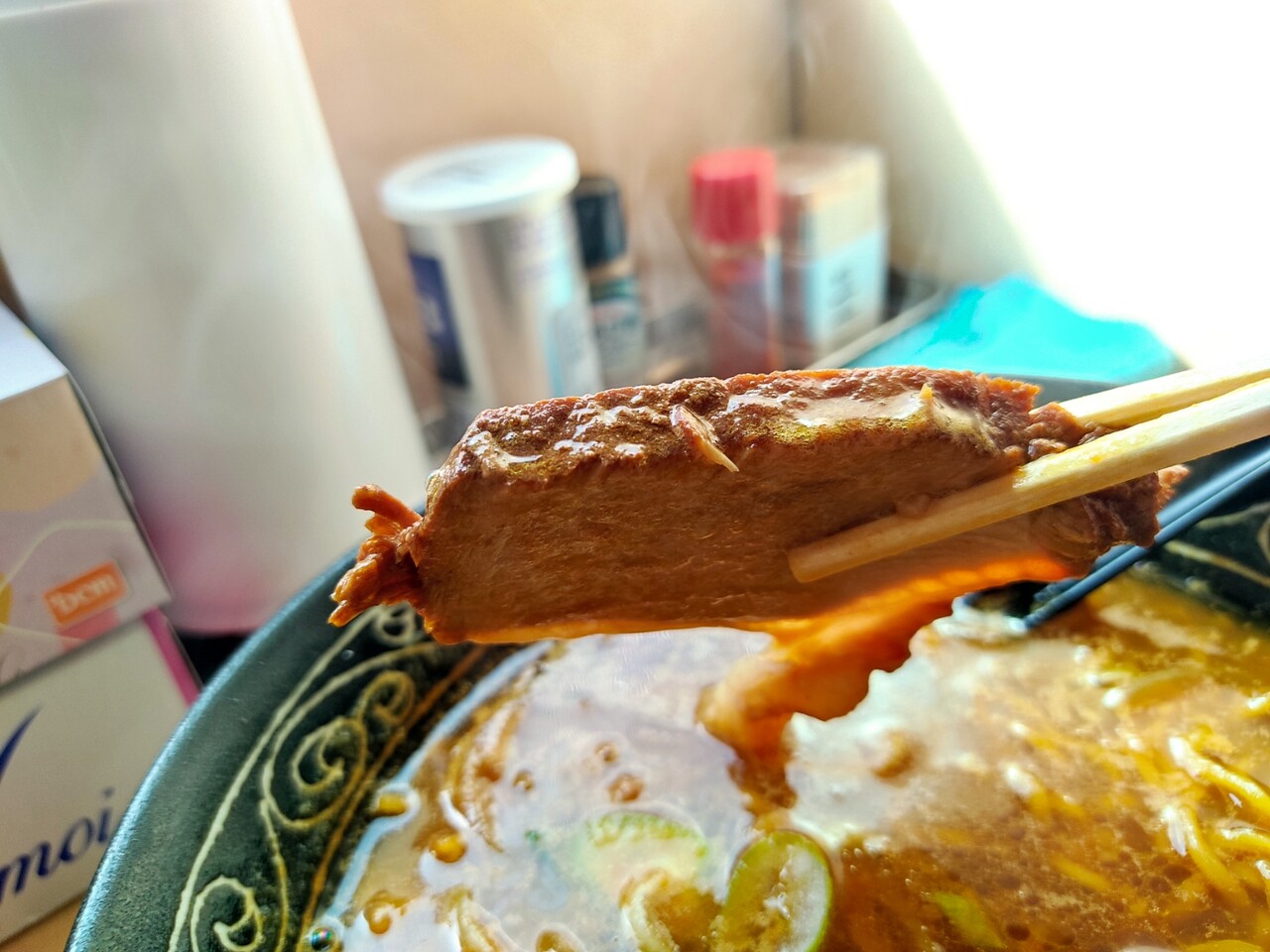 チャーシューは多少のパサつき有りますが歯応えのあるものでスープと一緒に食べるとよく合うと思います