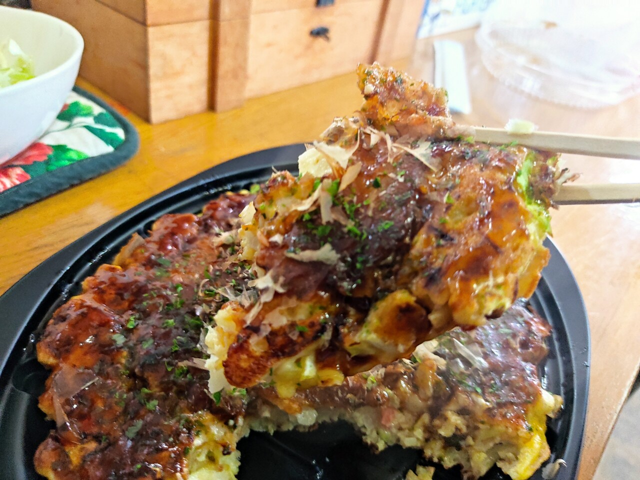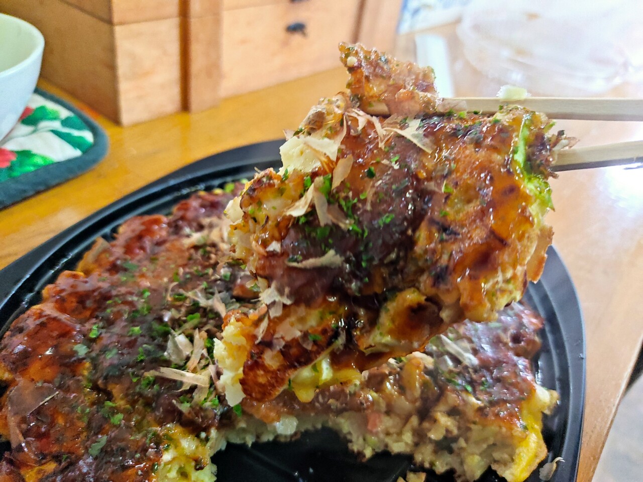 それではお好み焼きを食べていきます…
