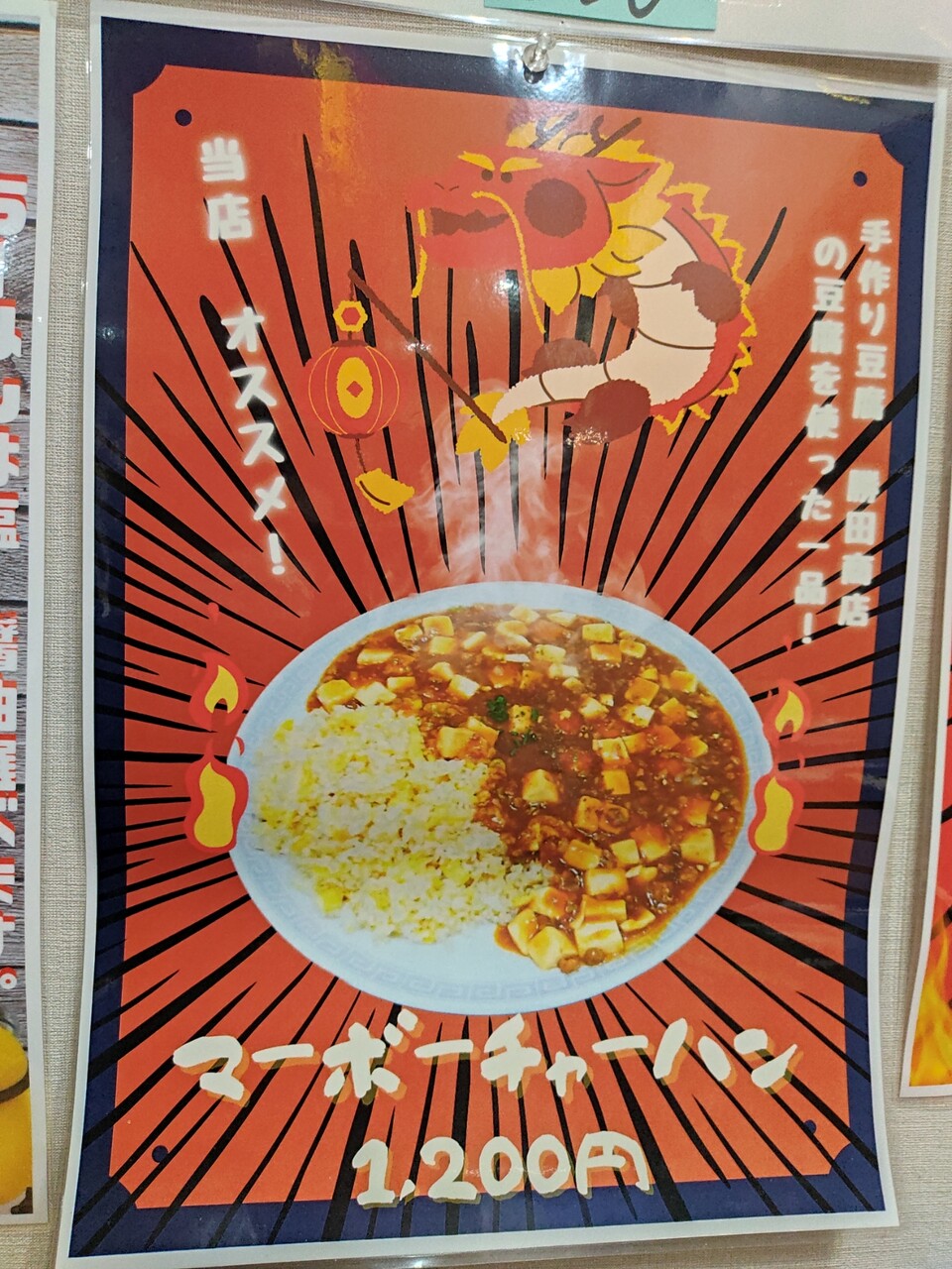 今回頂くものはこちら!ある意味壱龍火さんの定番メニューである マーボーチャーハン(¥1,200)です