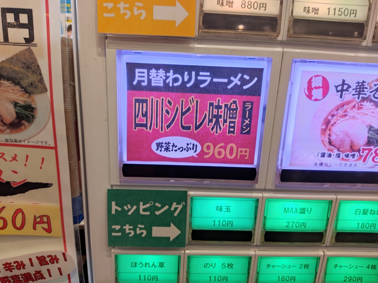 食券機で 月替わりラーメン四川シビレ味噌ラーメン(¥960)のチケットを購入します