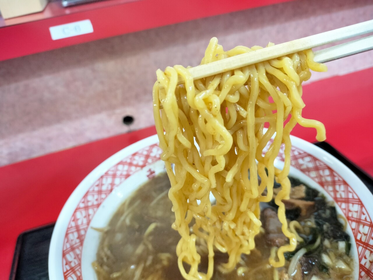 粉っぽさのある超煮干感、濃いめの塩気、ちょっとオイリーなスープ刻み玉ねぎと一緒に頂くと美味いんです