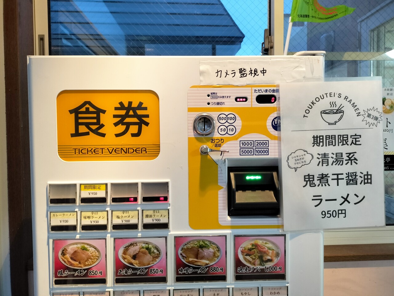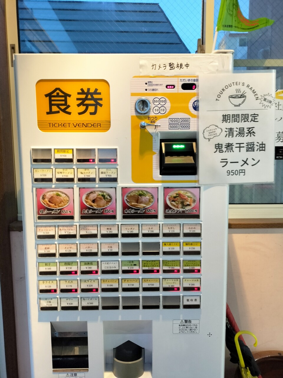 色々とメニューは御座いますが今回は期間限定のメニュー 清湯系鬼煮干醤油ラーメン (¥950)の食券を購入する事にします