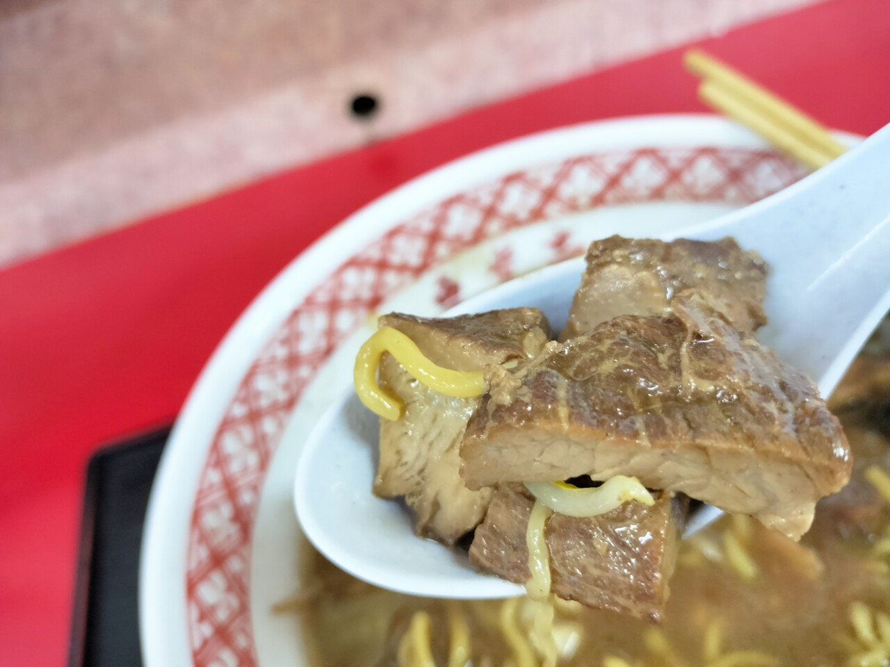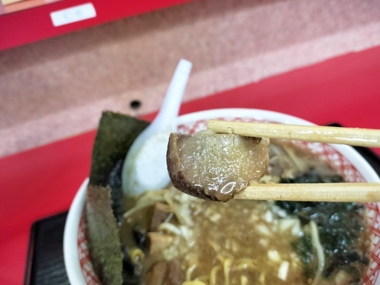 チャーシューさコロコロした塊で とろとろ系ではなく歯応えのあるもので スープによく合い美味い