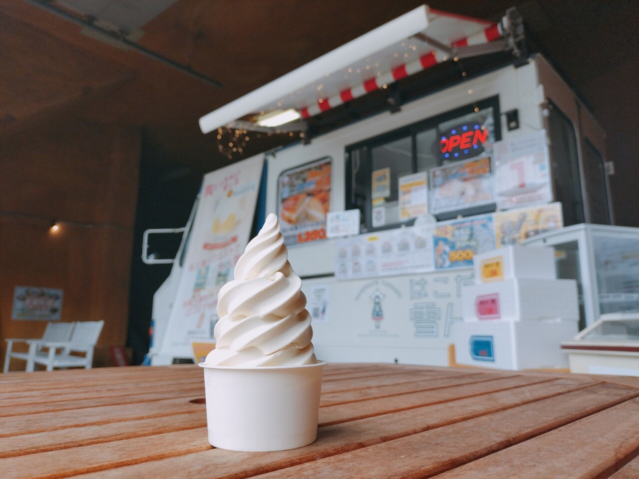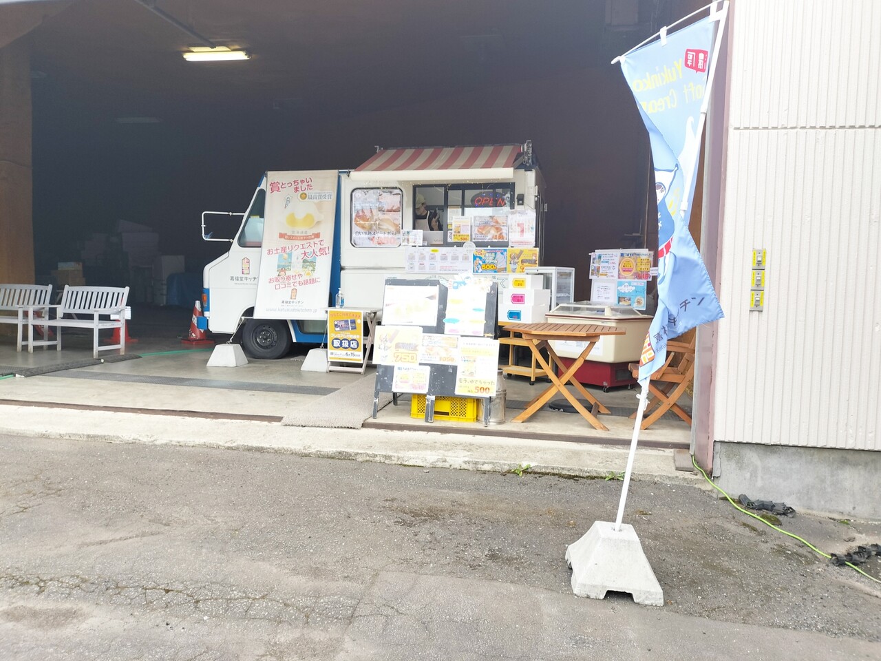 奥へ進むと 移動販売車があります。出張販売の際にはソフトクリームはお休みとなります