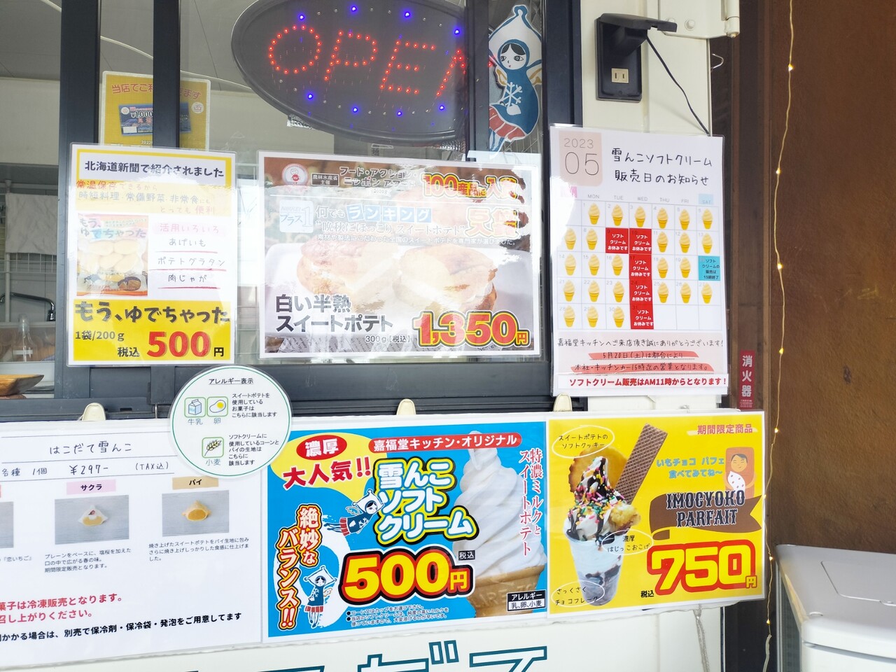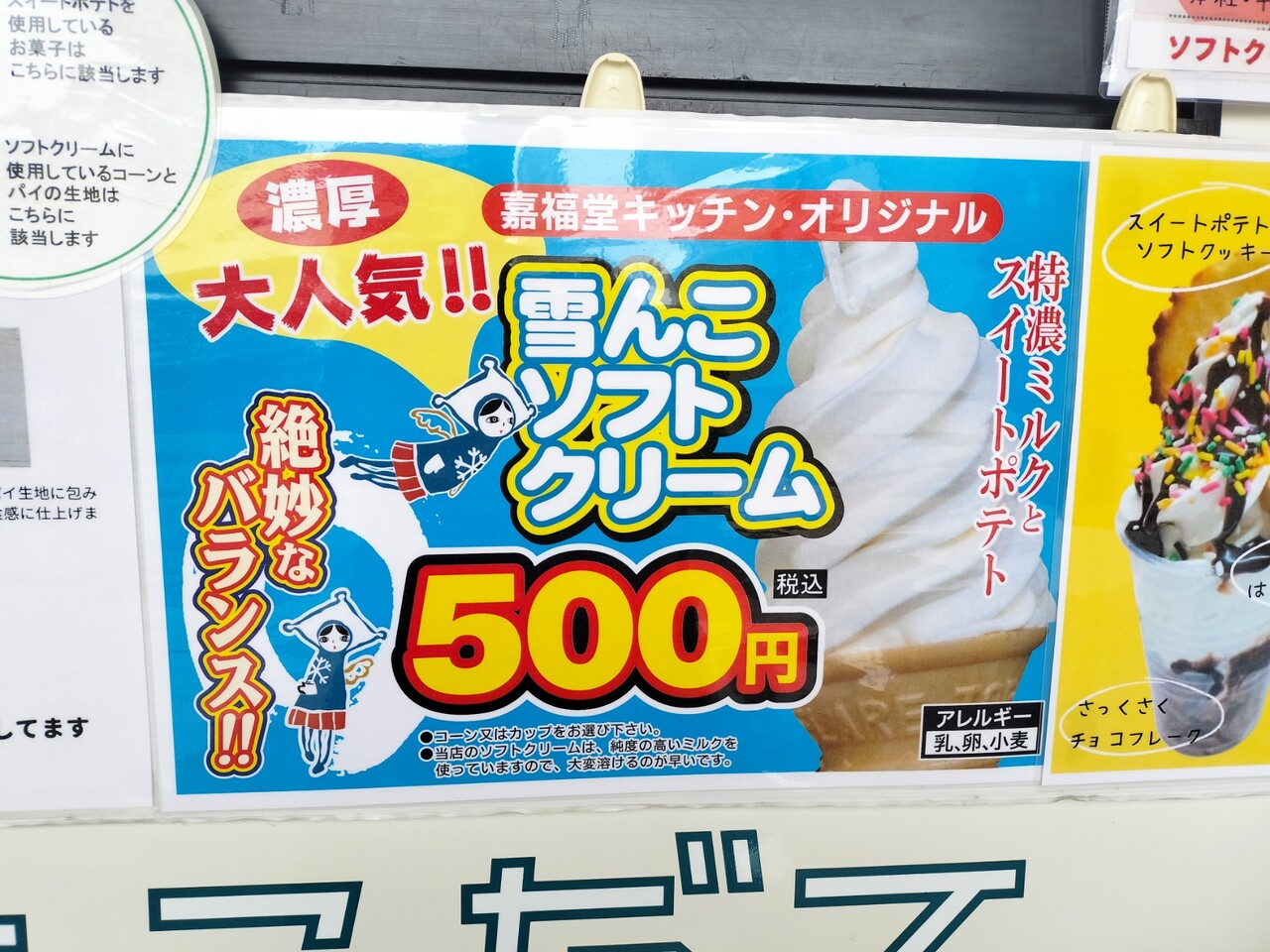 で今回の目的がソフ活なので 濃厚ミルクとスイートポテトの嘉福堂キッチン・オリジナルソフトクリーム 雪んこソフトクリーム(¥500)をオーダー致します