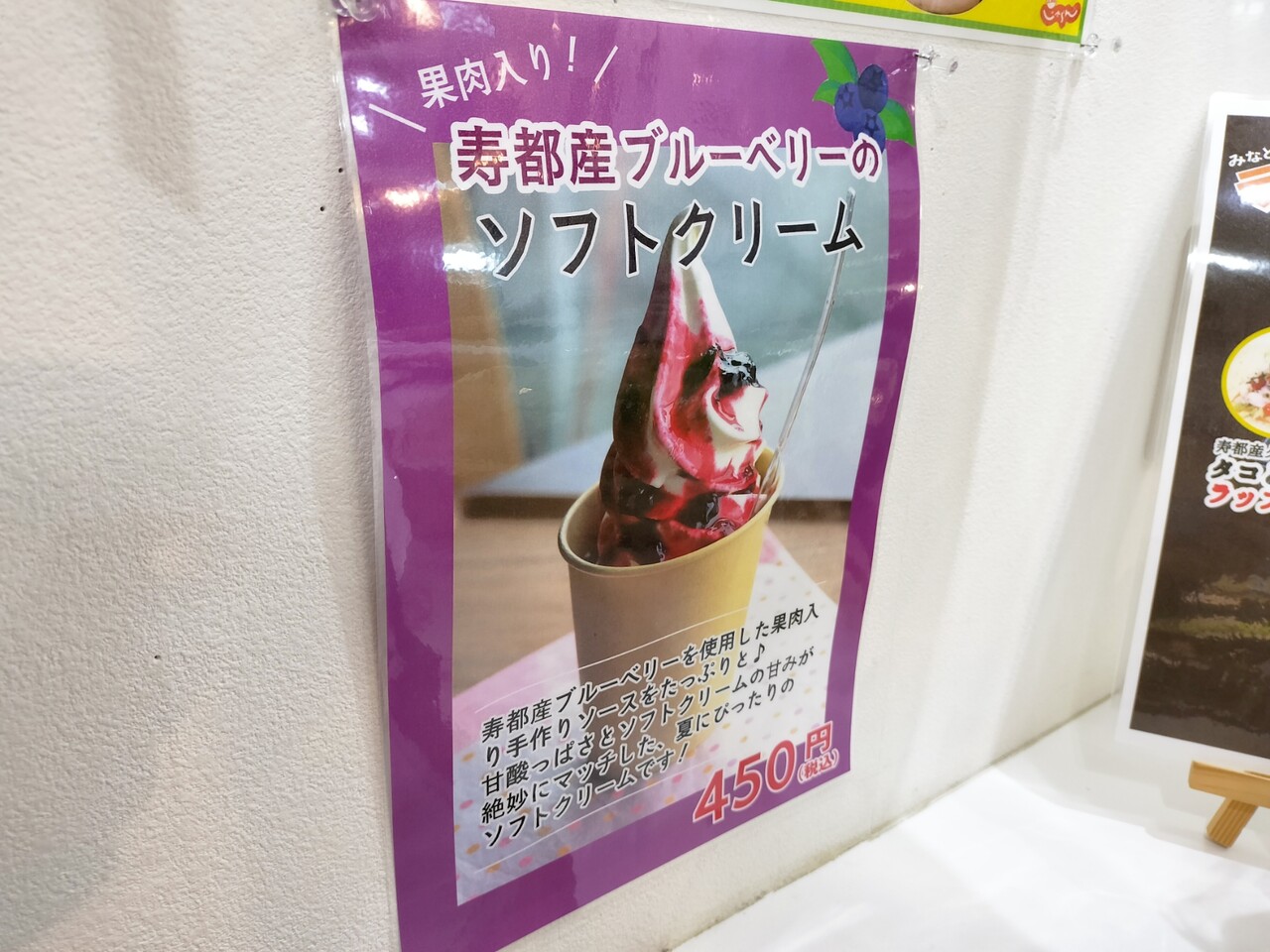 ソフトクリーム食べたかったので 寿都産ブルーベリーソフトクリーム(¥450)をオーダーしまして