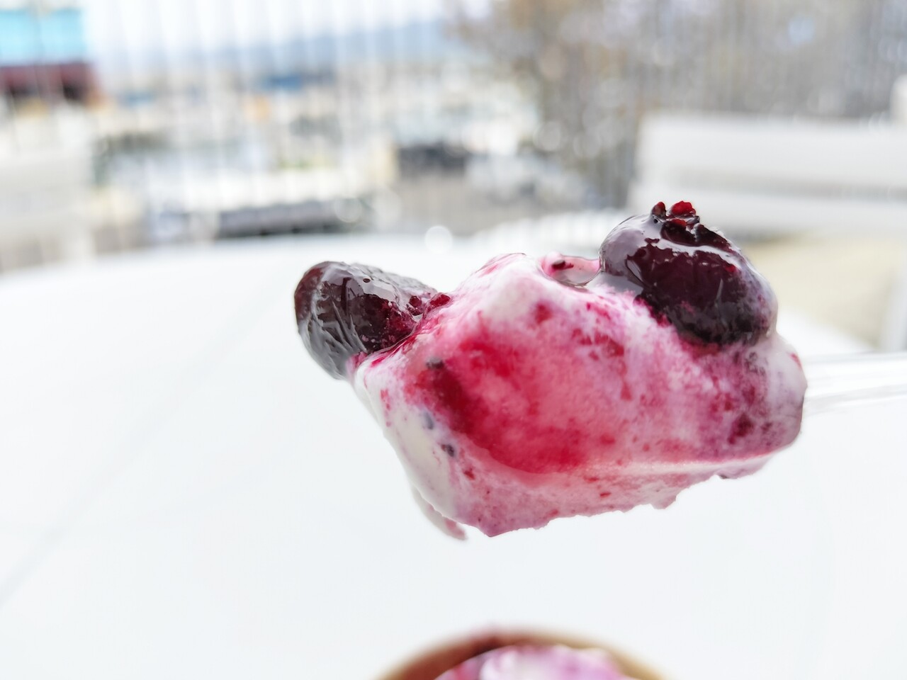 ブルーベリーソースと果肉が入っており頂くと濃厚ミルキーなソフトクリームに甘酸っぱいブルーベリーのソースは 美味いんです