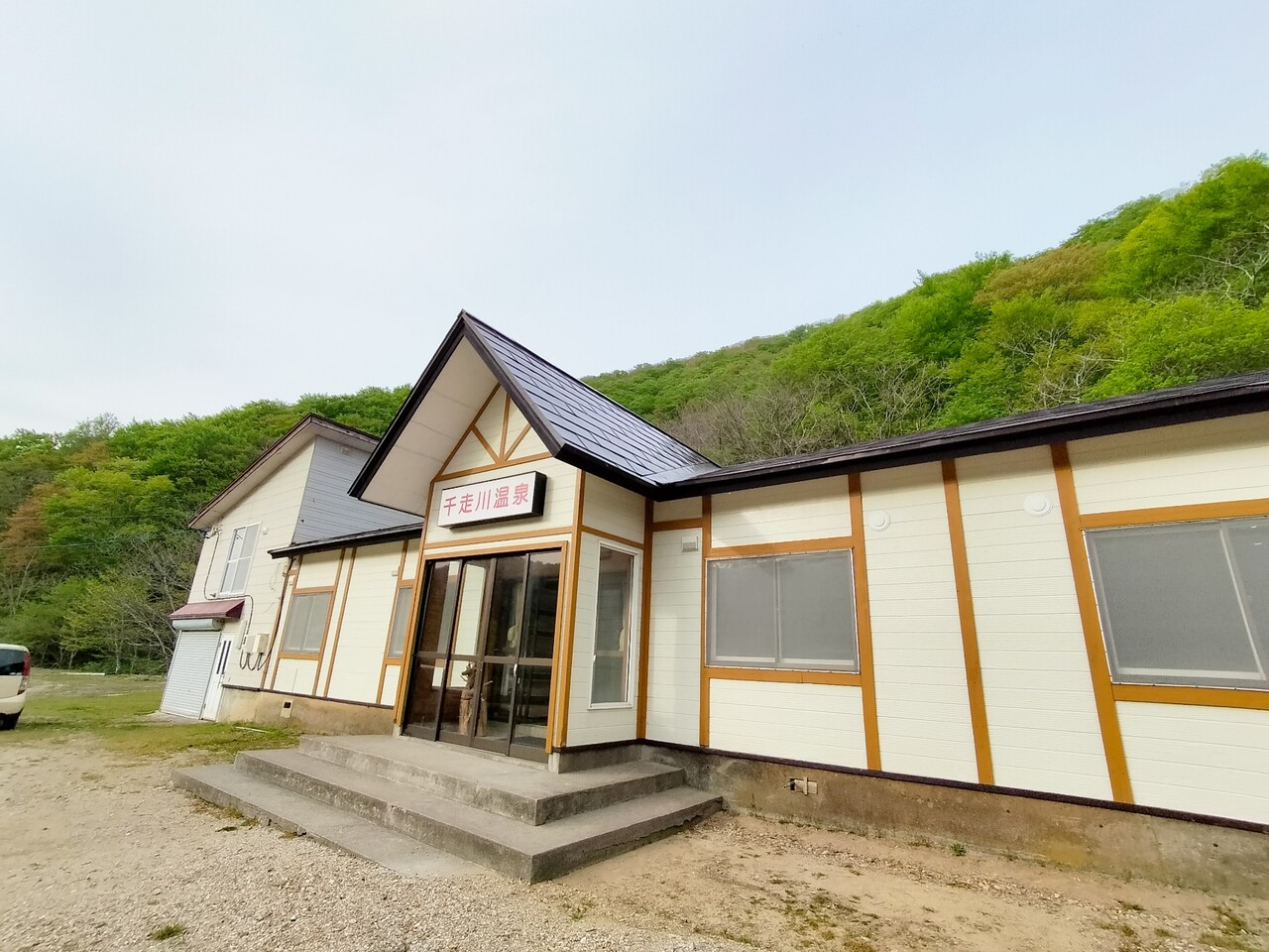 とある日に 温泉巡りをしようと島牧村に訪れておりまして 先ずは山の奥にある温泉施設 千走川温泉旅館 (ちはせかわおんせんりょかん)さんに伺う事に致しました