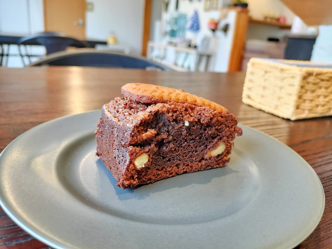 ブラウニーが程よくしっとりとしており チョコの甘みと風味、それと胡桃の食感、風味のアクセントが良く美味っ