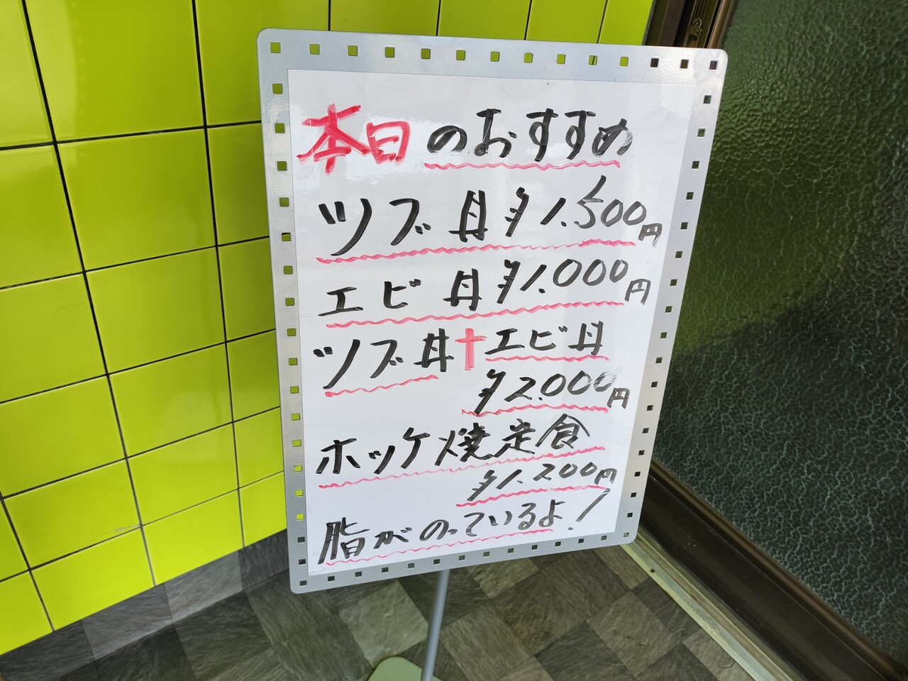 この日のオススメに エビ丼を見かけましたので入店前に食べるもの決定 甘エビ丼(¥1,000)確定しました