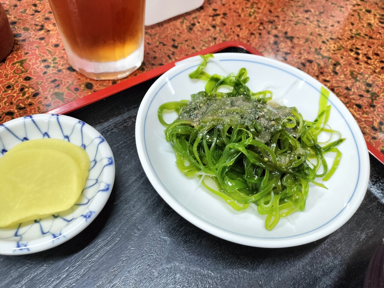 昆布サラダのドレッシング和え、沢庵