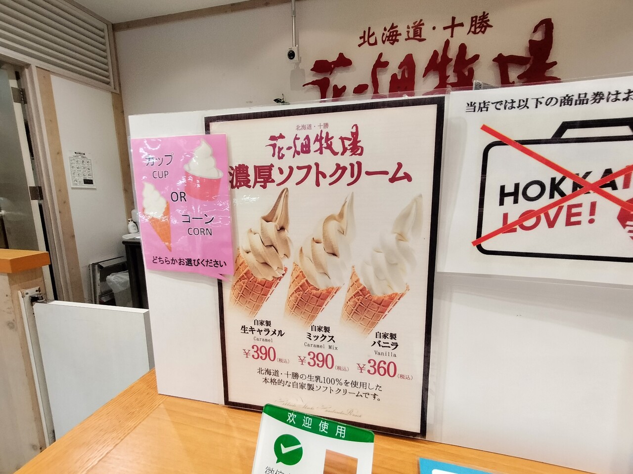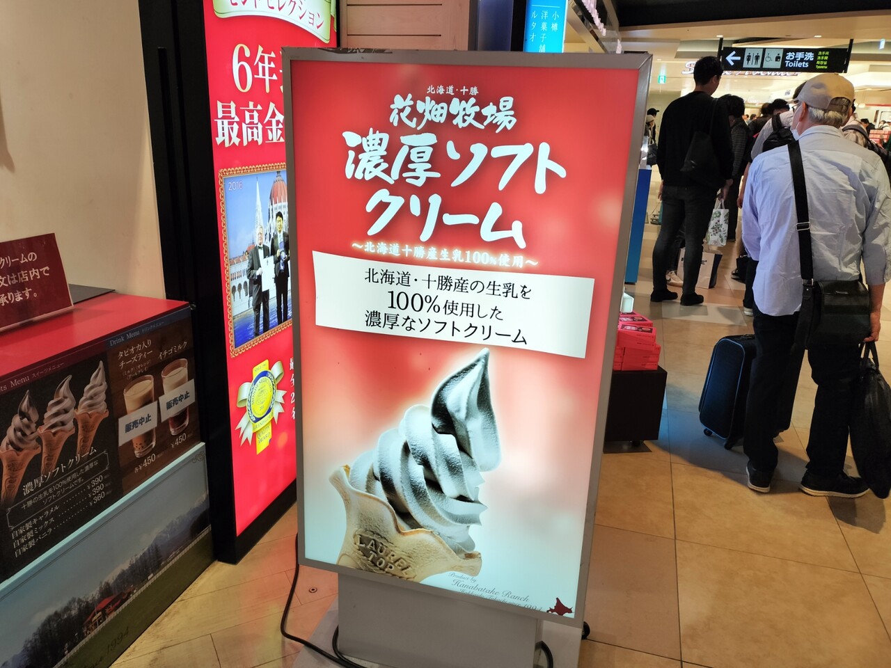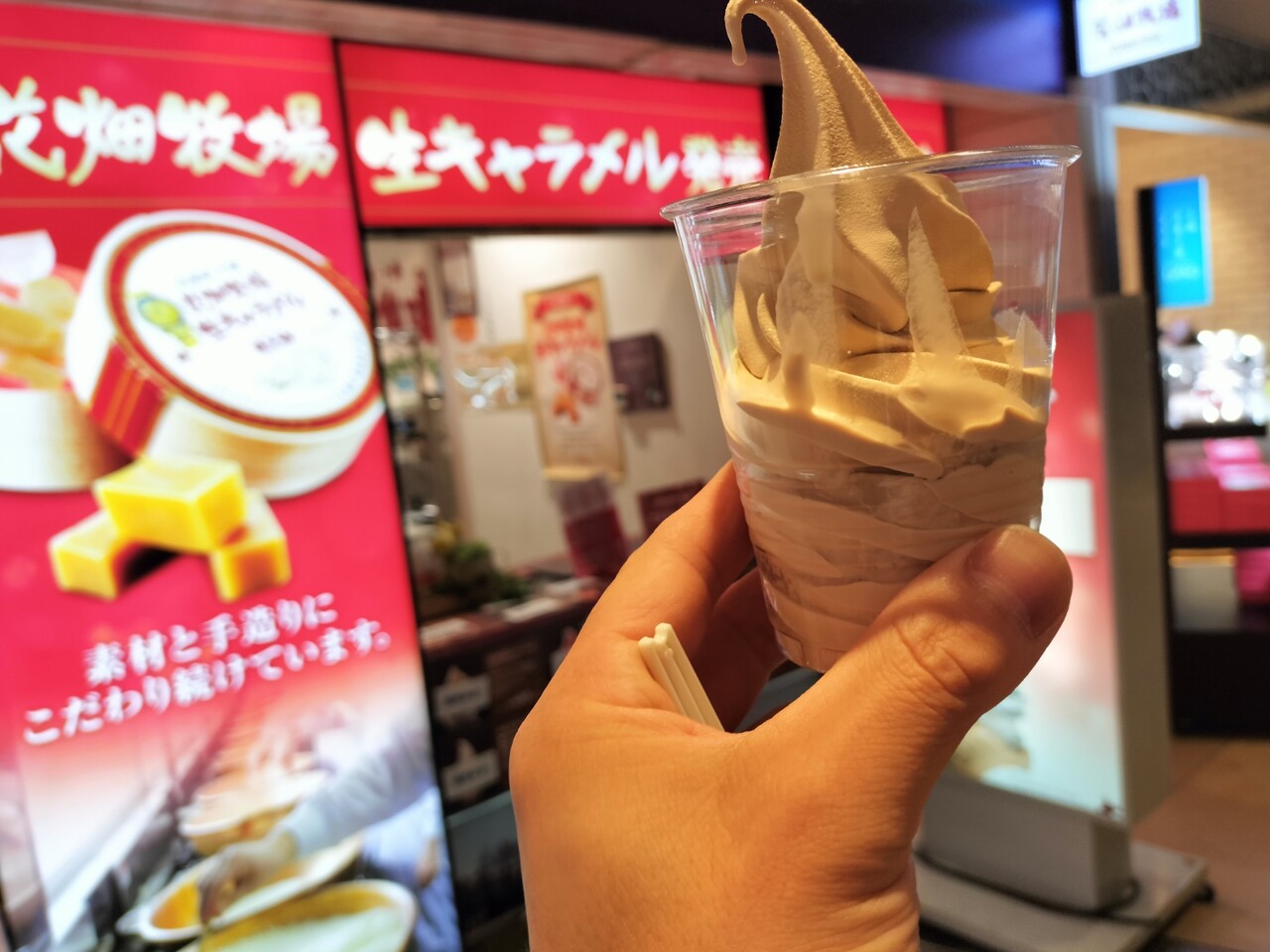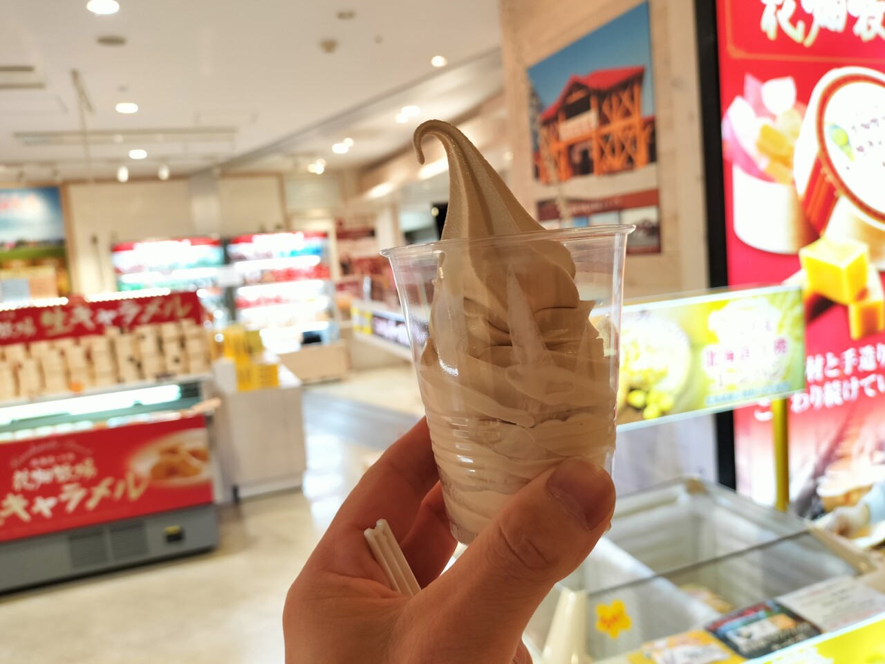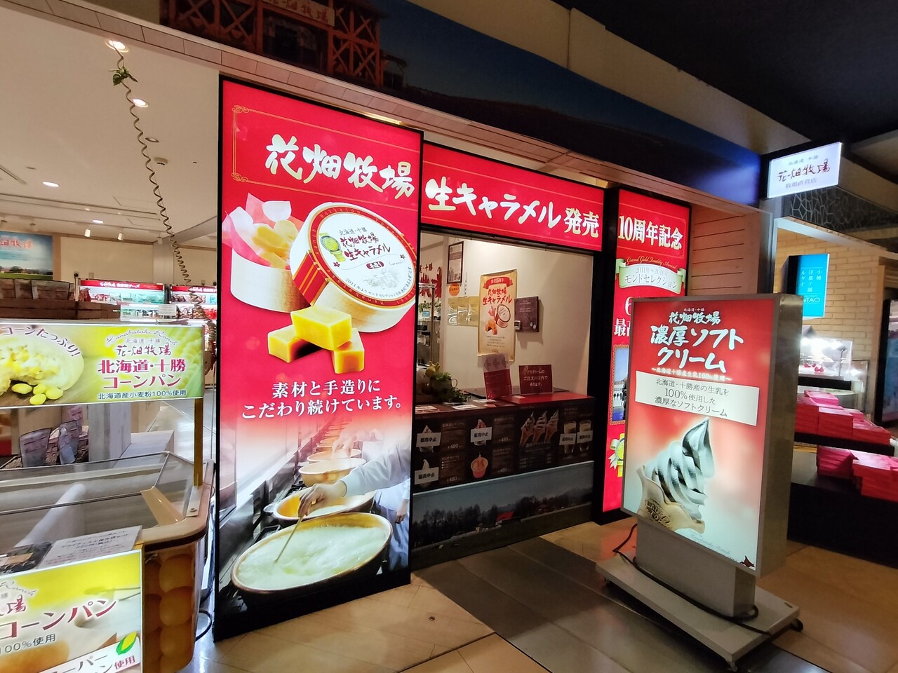 とある日に 新千歳空港国内線ターミナルでソフトクリーム食べ歩き ソフ活をして4本を胃に収めましたが まだまだ足りず 5本目に 一時期生キャラメルで一世を風靡した 花畑牧場 の 新千歳空港店 へ伺う事に…、