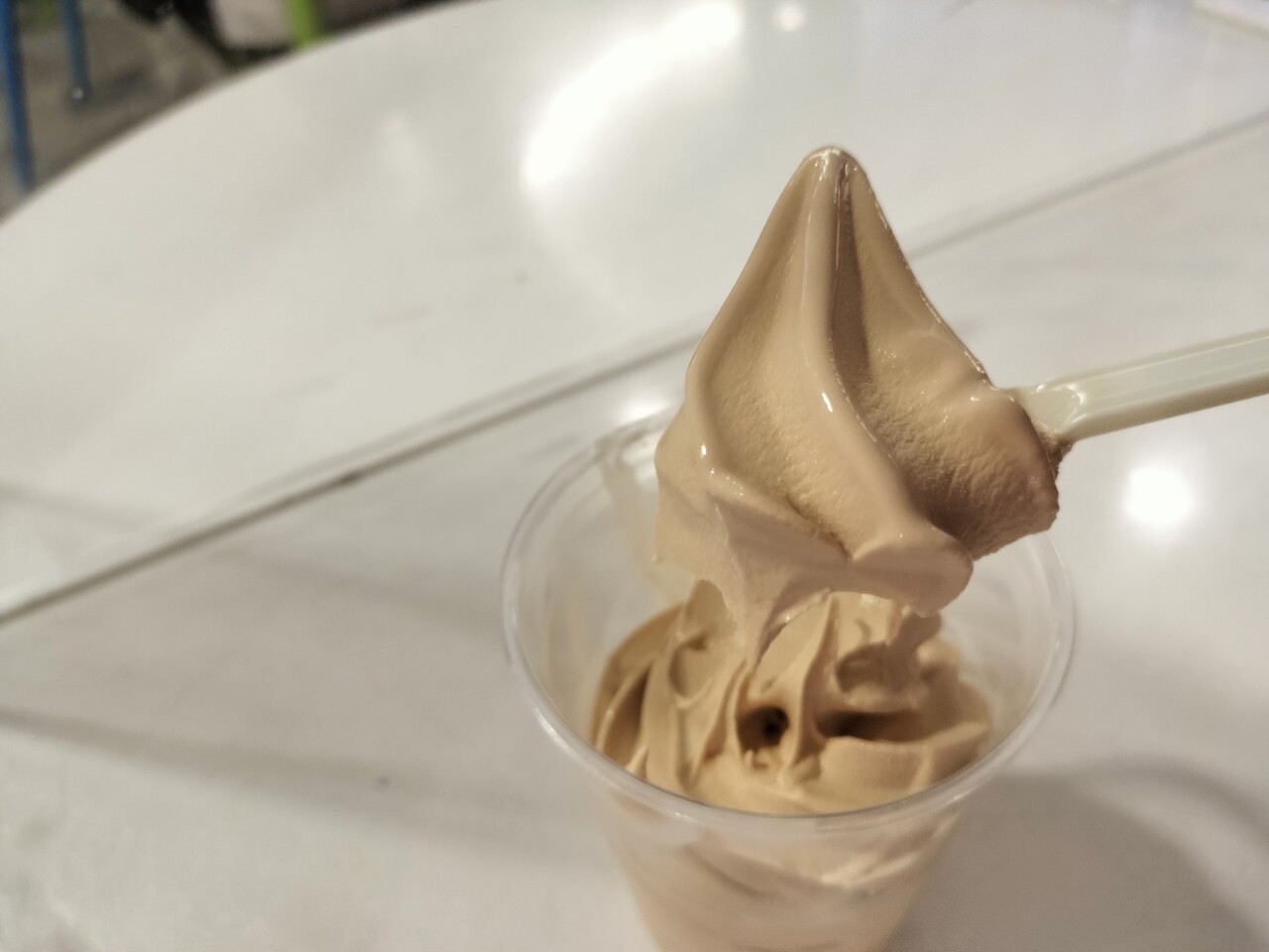 淡いブラウンカラーでキャラメルの 香るソフトクリームです