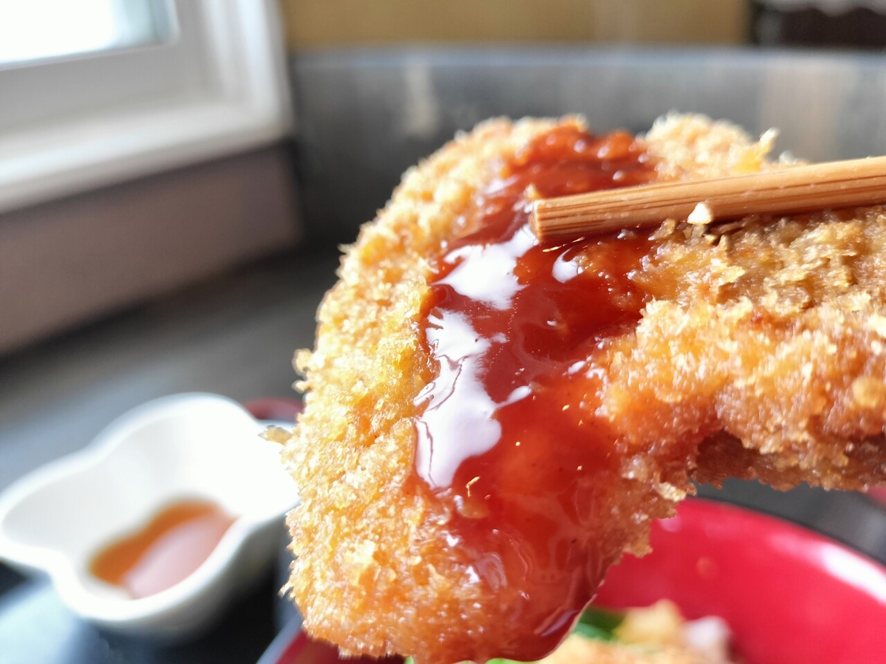 豚肉は柔らかく 衣は薄めですが サクサクと食感が楽しく 甘めのタレがカツとマッチングして バリ美味!