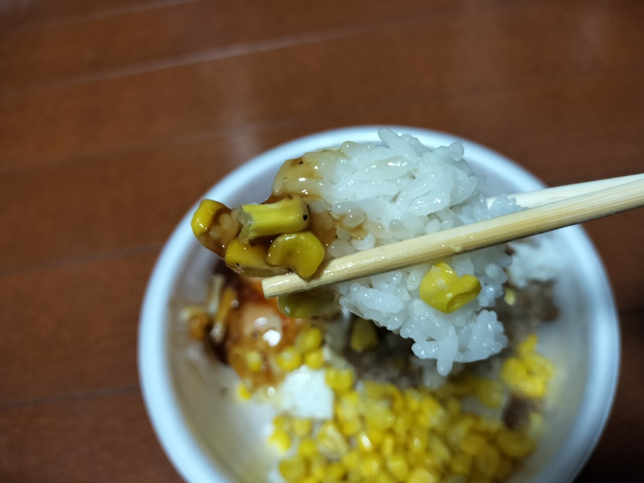 ご飯とコーンと照焼ソースで食べても美味い