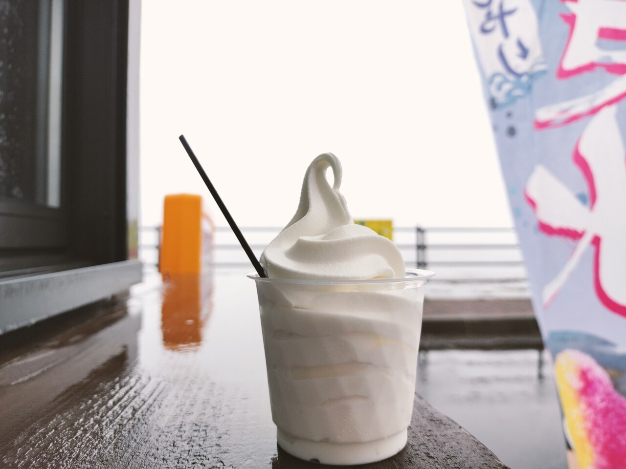 雨の中やっぱテラスで食べたい気分のソフトクリーム