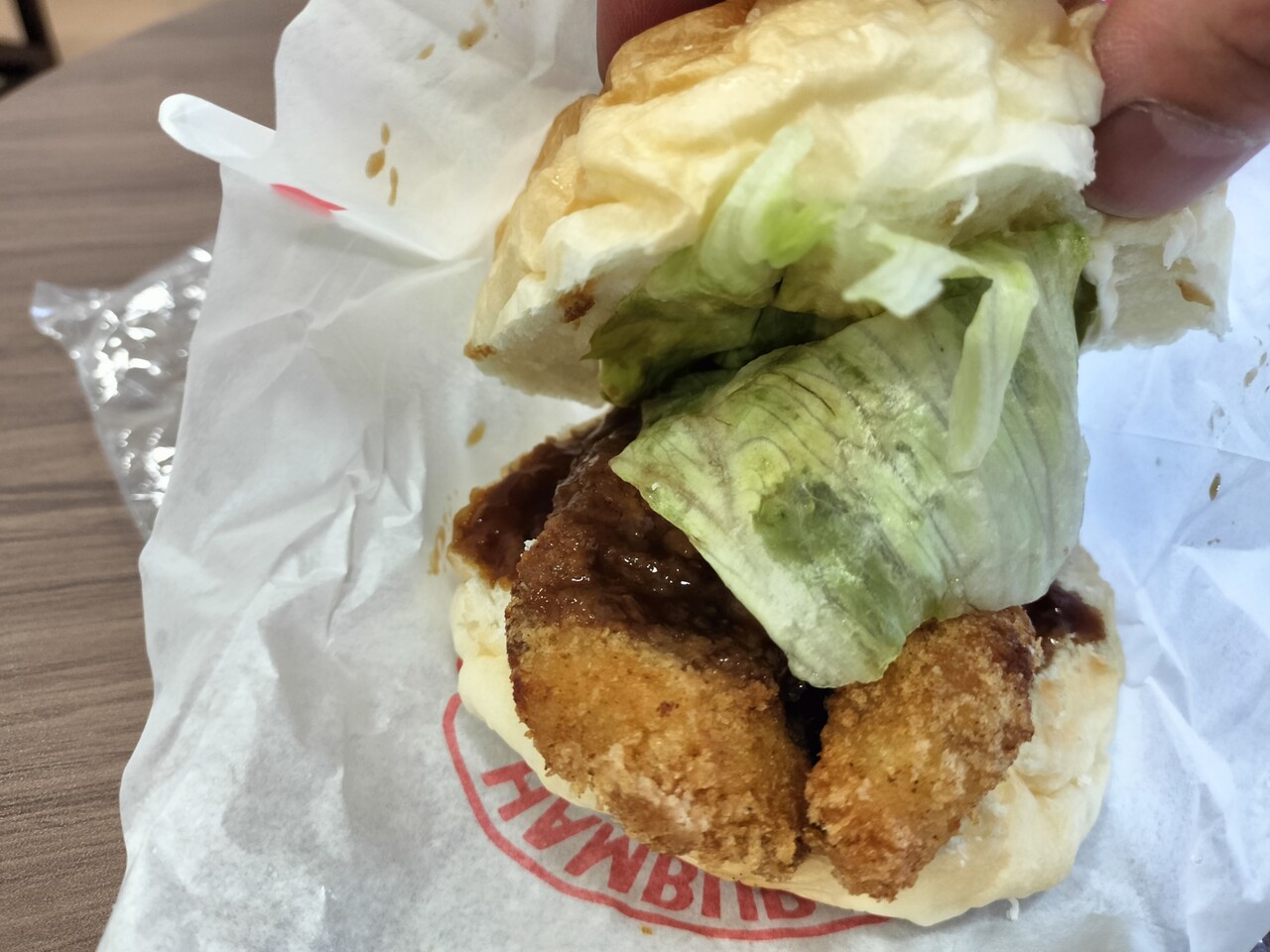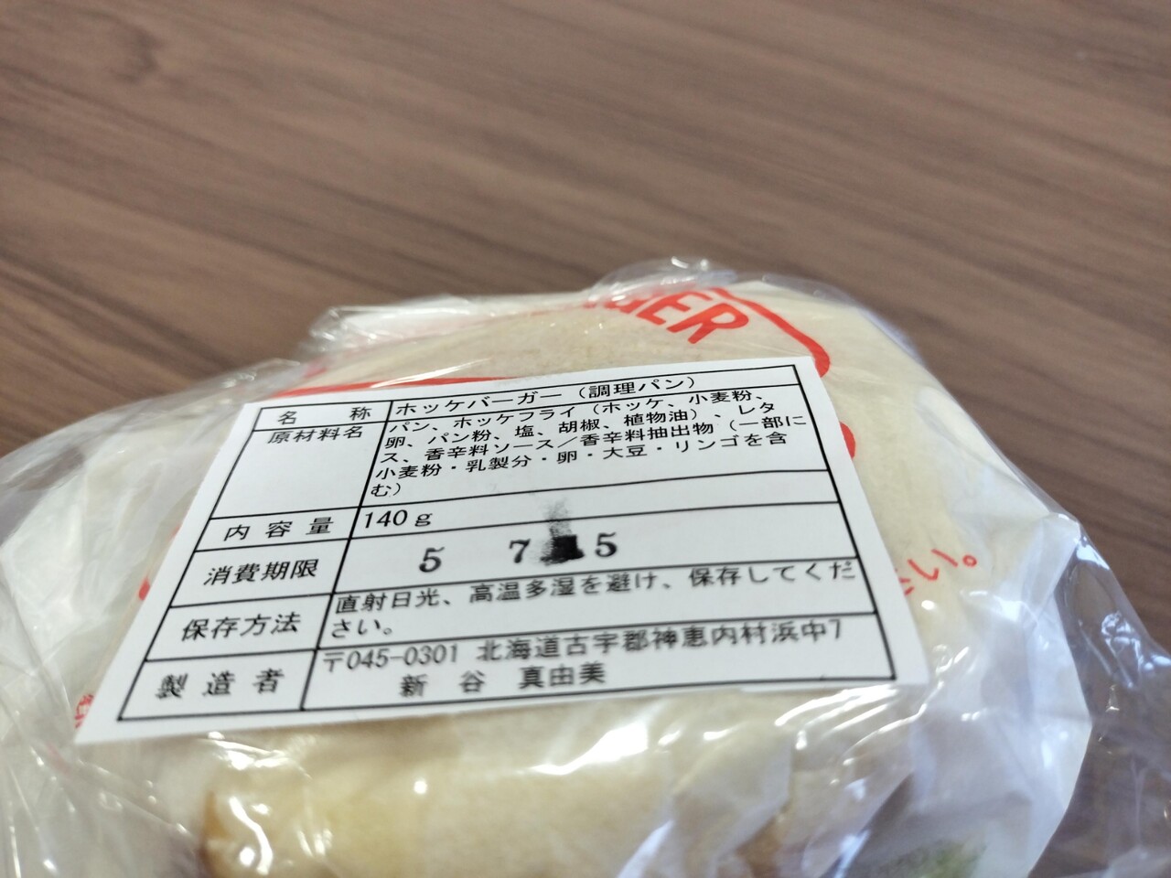 バンズ、レタス、ホッケフライ、マヨネーズ、ソースの内容となります