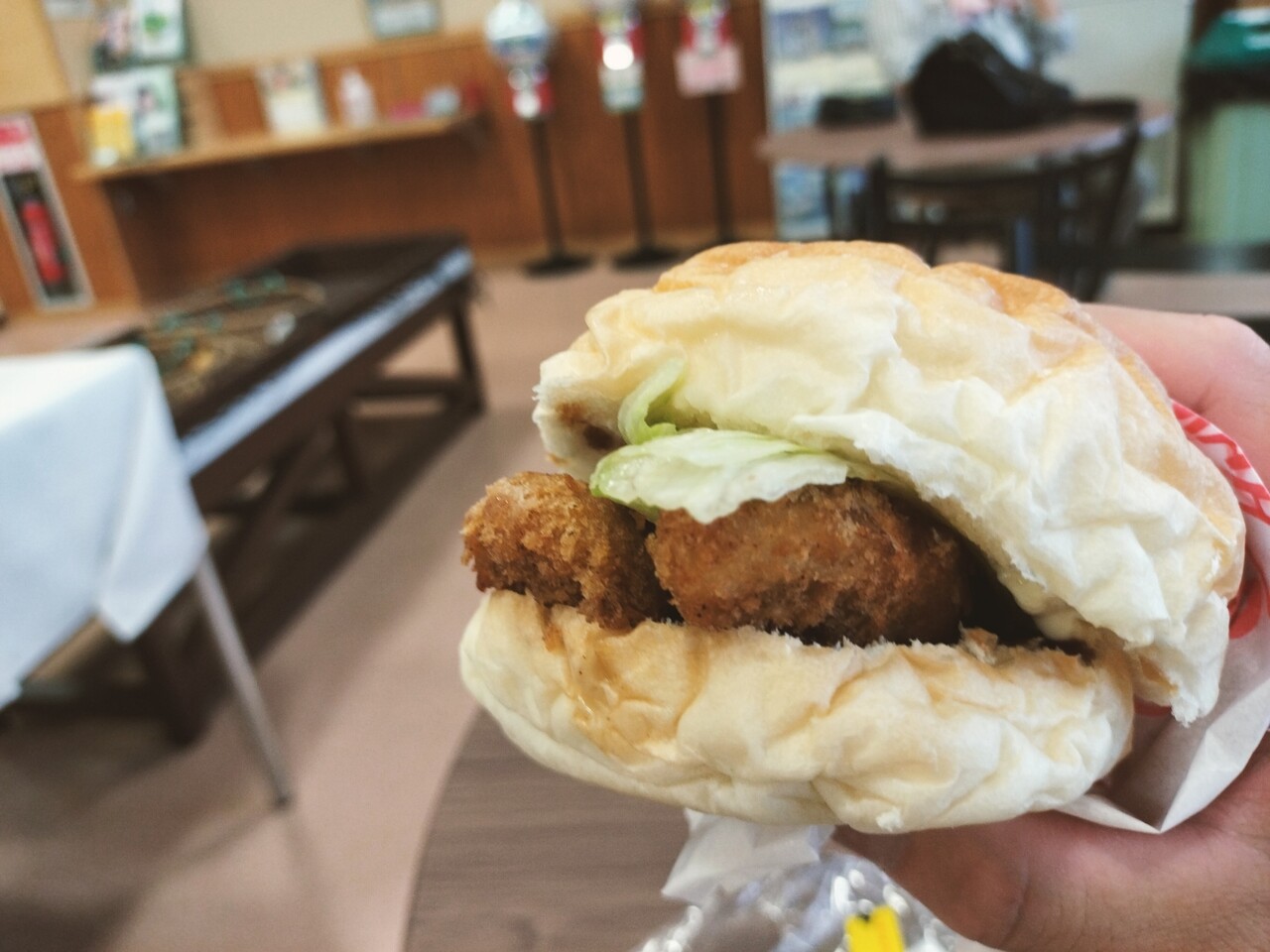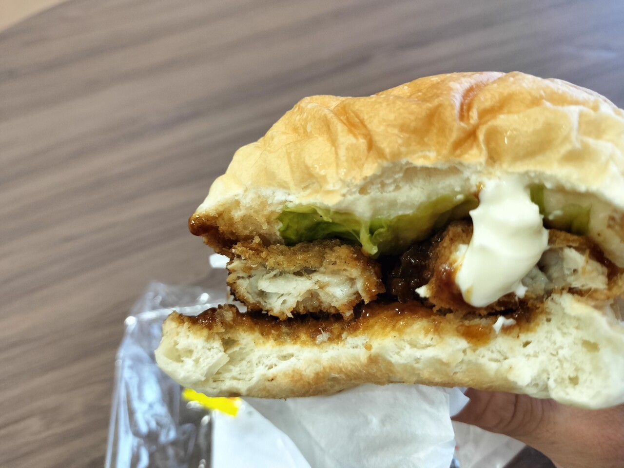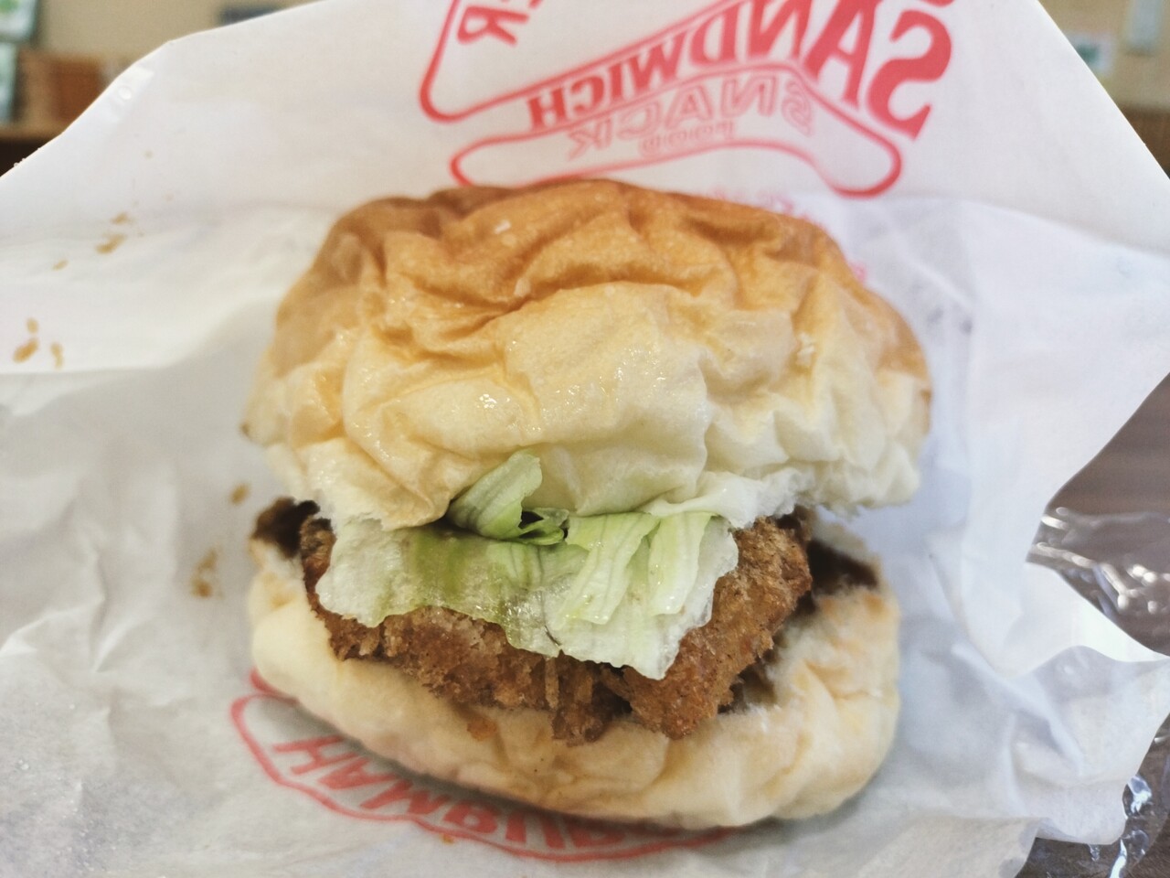 ホッケフライは肉厚でふわっとしており レタスのシャキシャキ感とマヨネーズとソースの味付けもGOOD