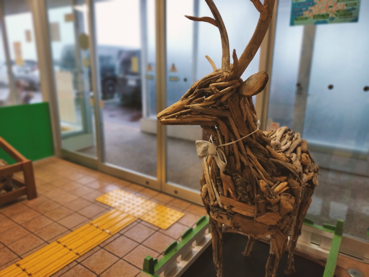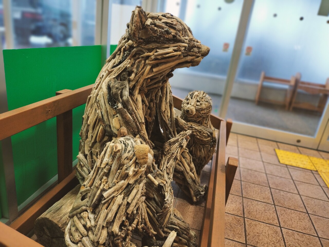 ともあれ入館すると 木で作られた熊や鹿が飾られておりました
