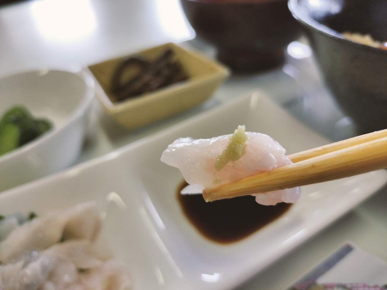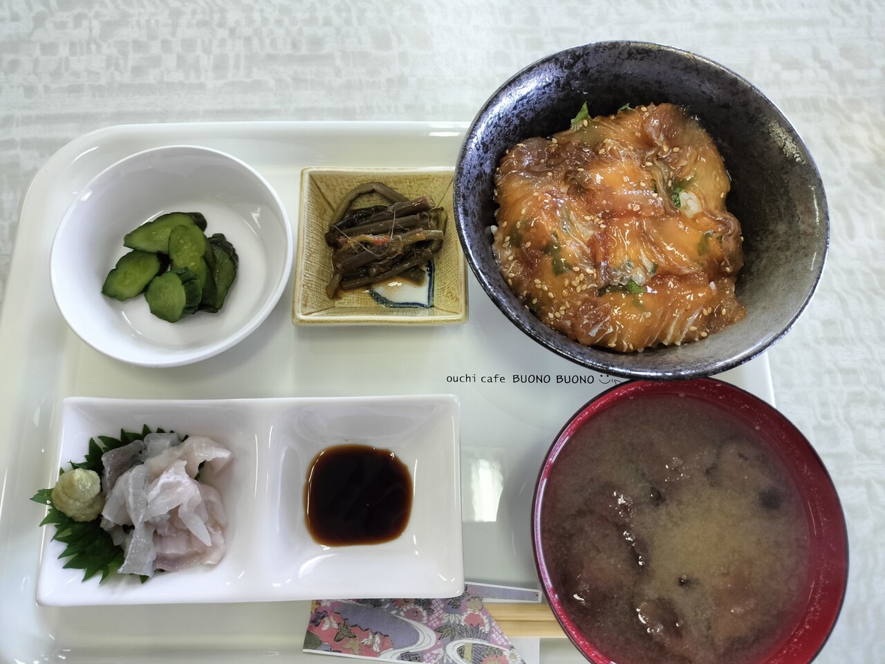 以上がヒラメの漬け丼定食となります