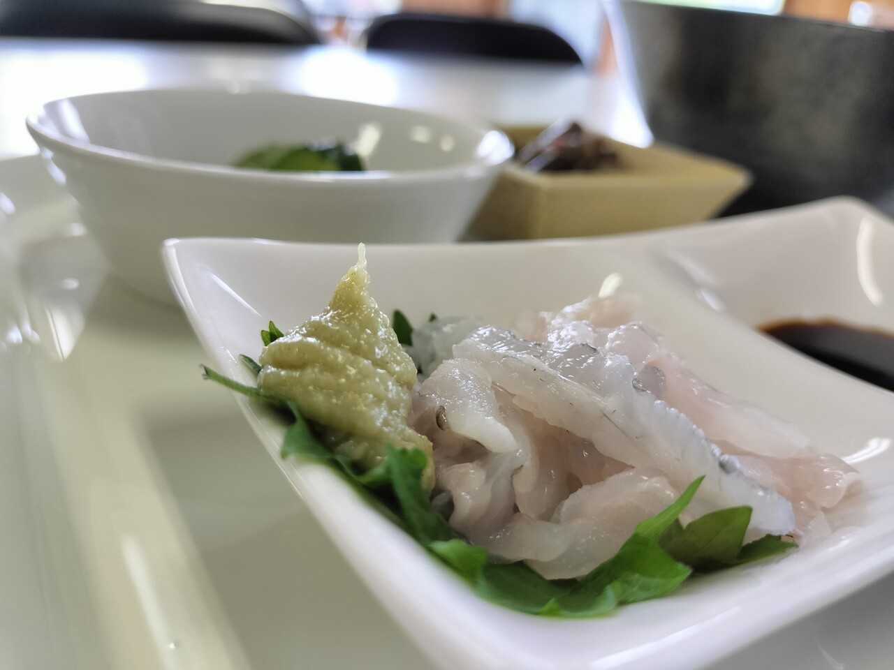 特製のタレに漬けられたヒラメの刺身