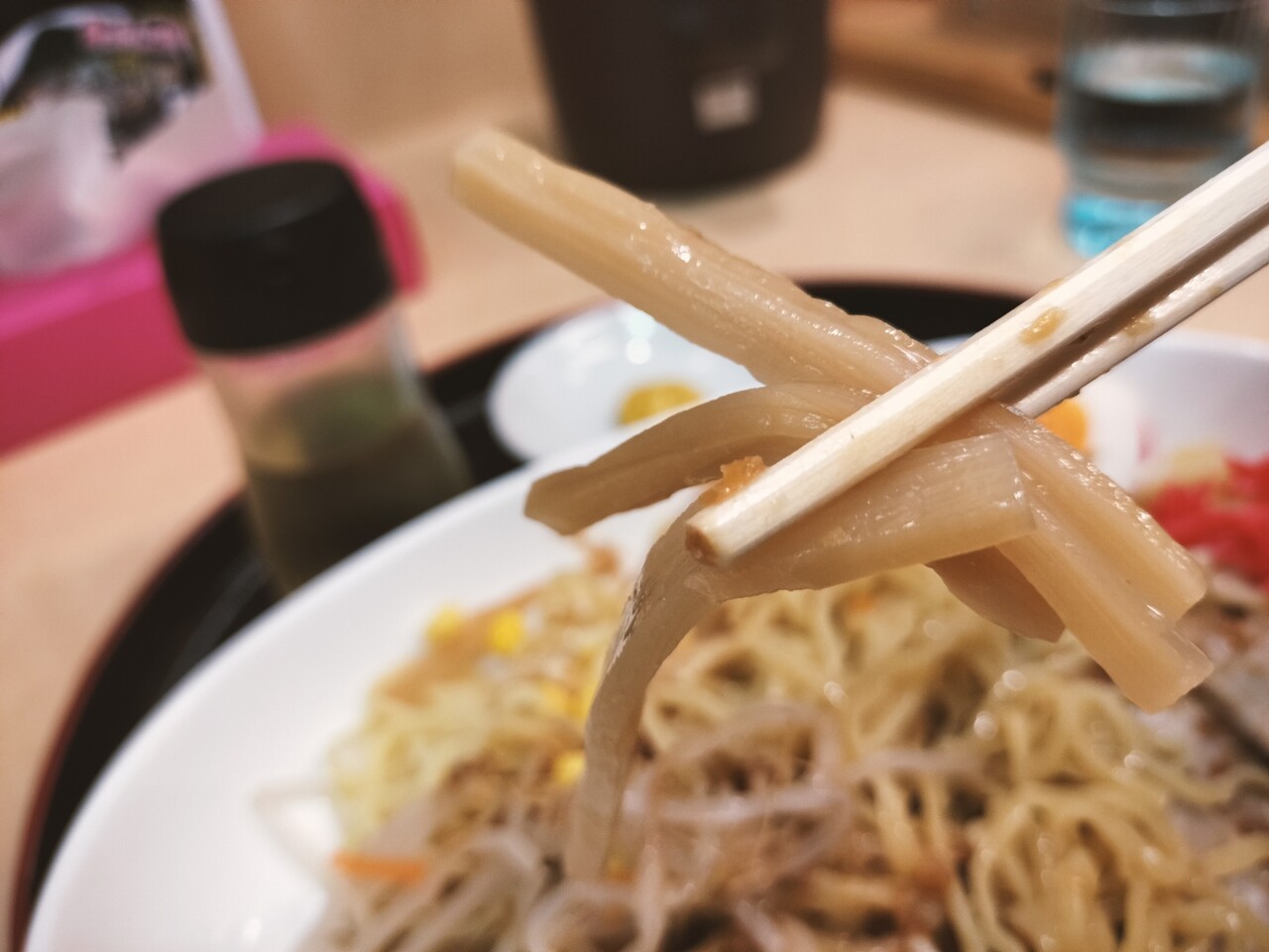 そして食べると 冷し中華っぽい味わいになり 辛子を添えて食べると美味い