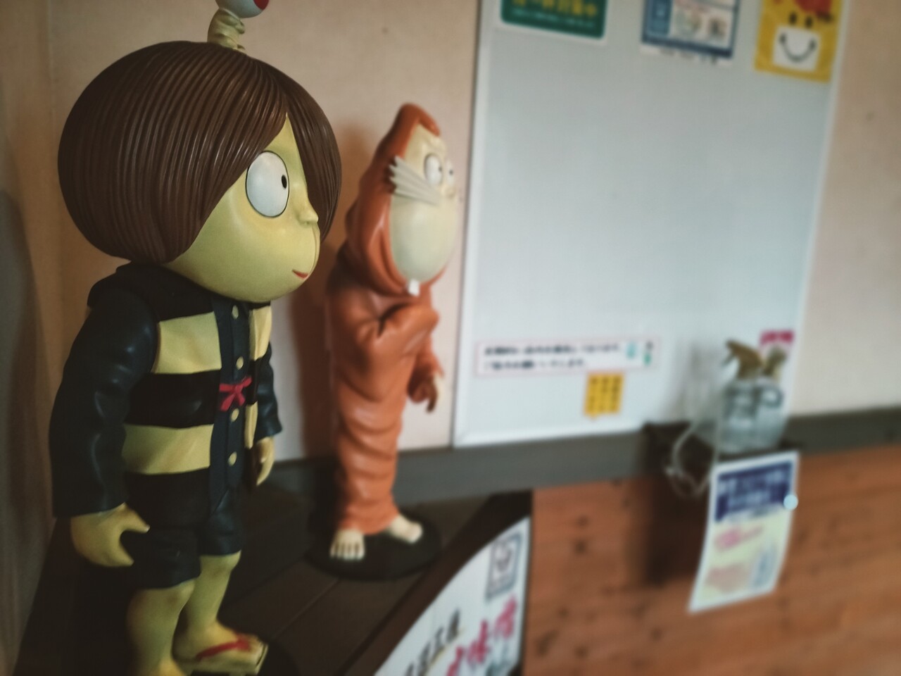 風除室にはゲゲゲの鬼太郎とネズミ男がお出迎えしてくれます