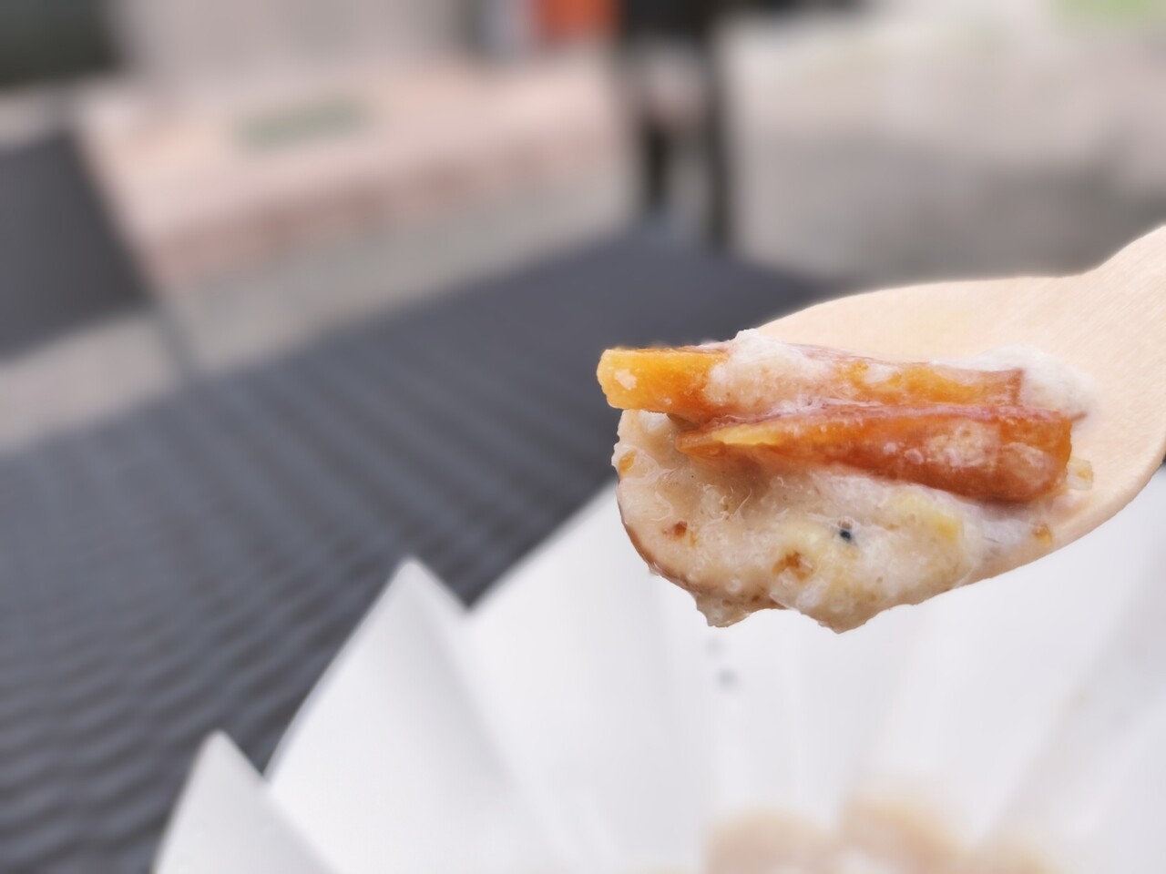 それでは生クリームと焼芋モンブランとカキ氷をパクリと食べると…