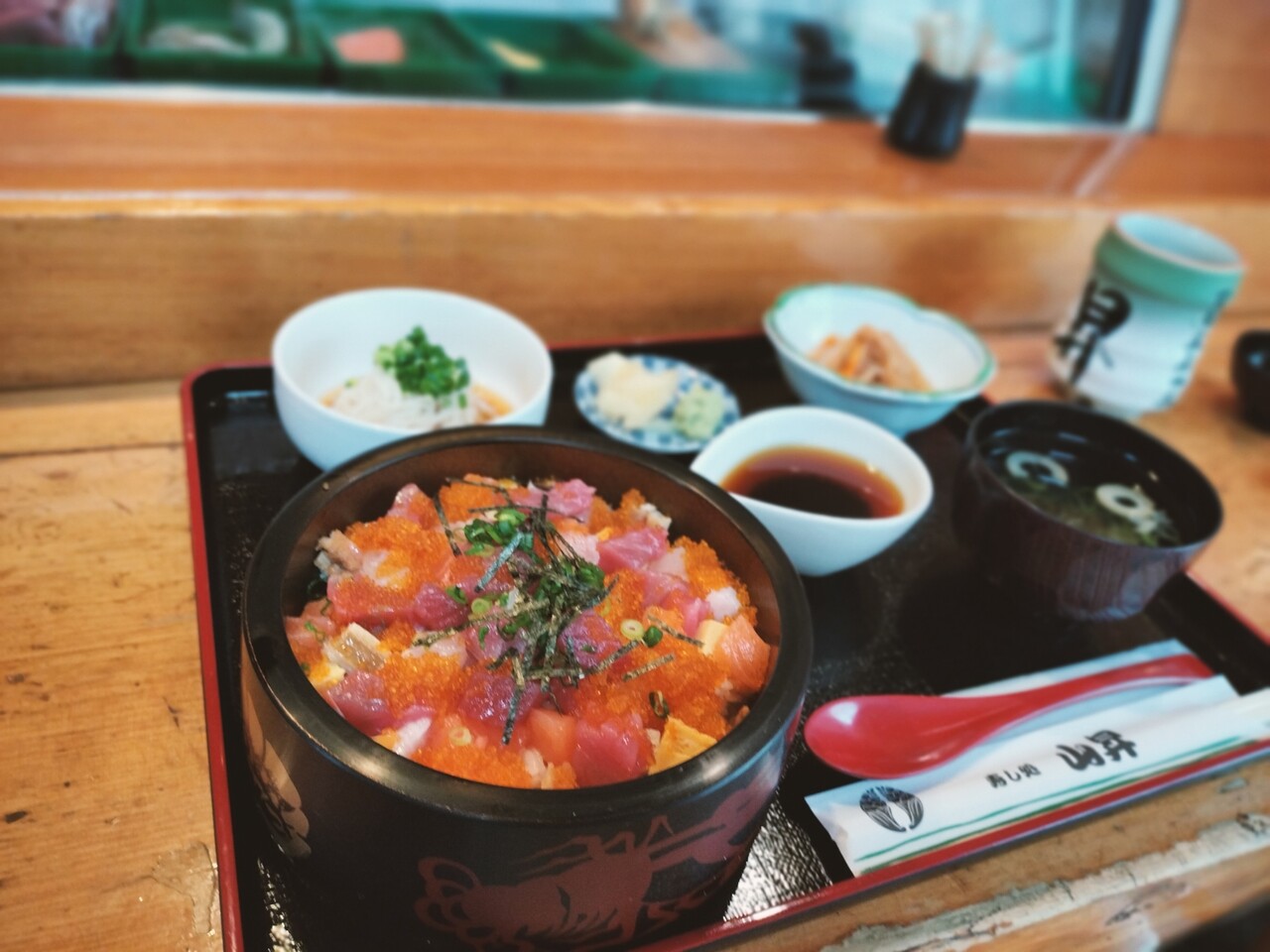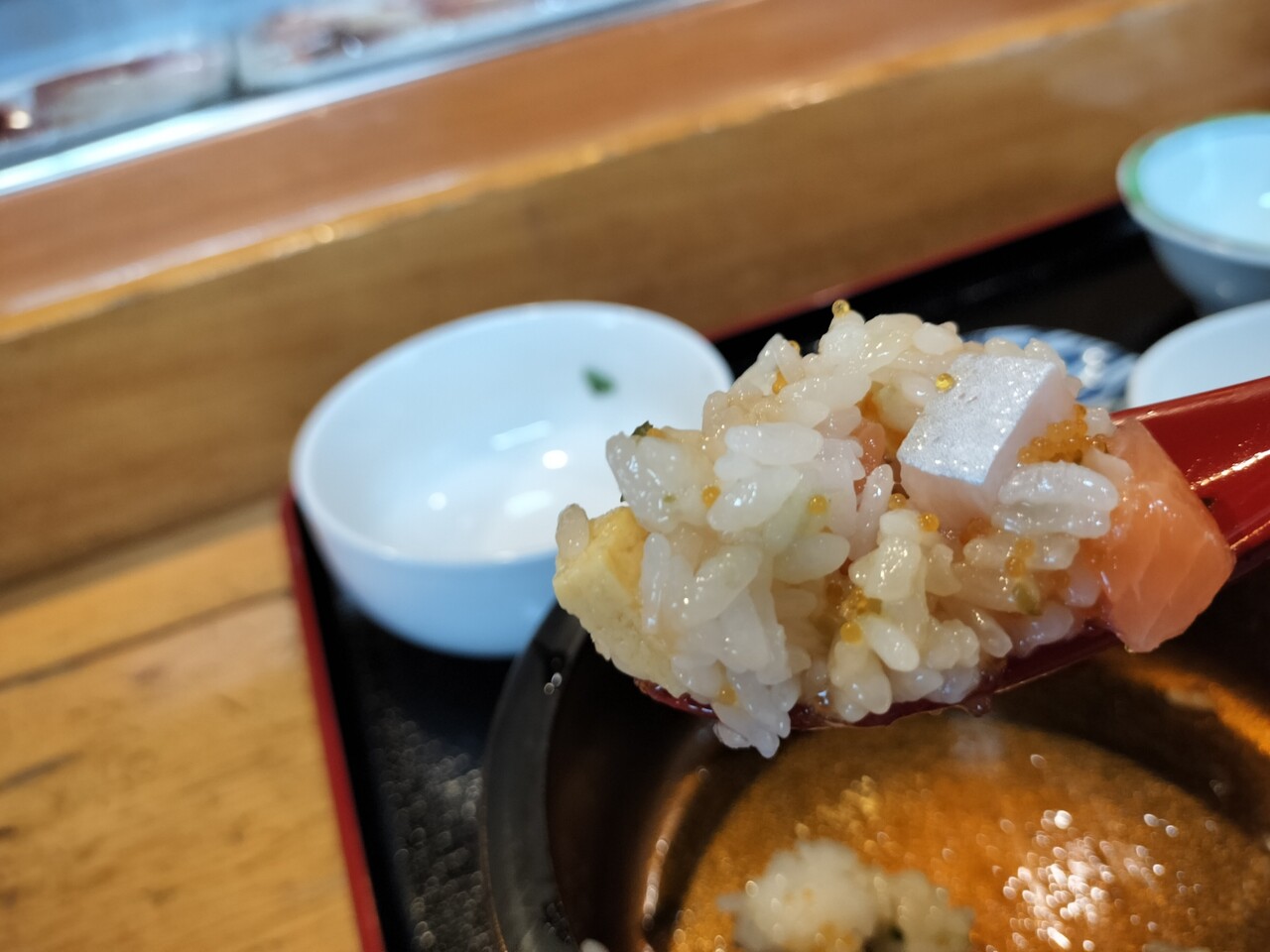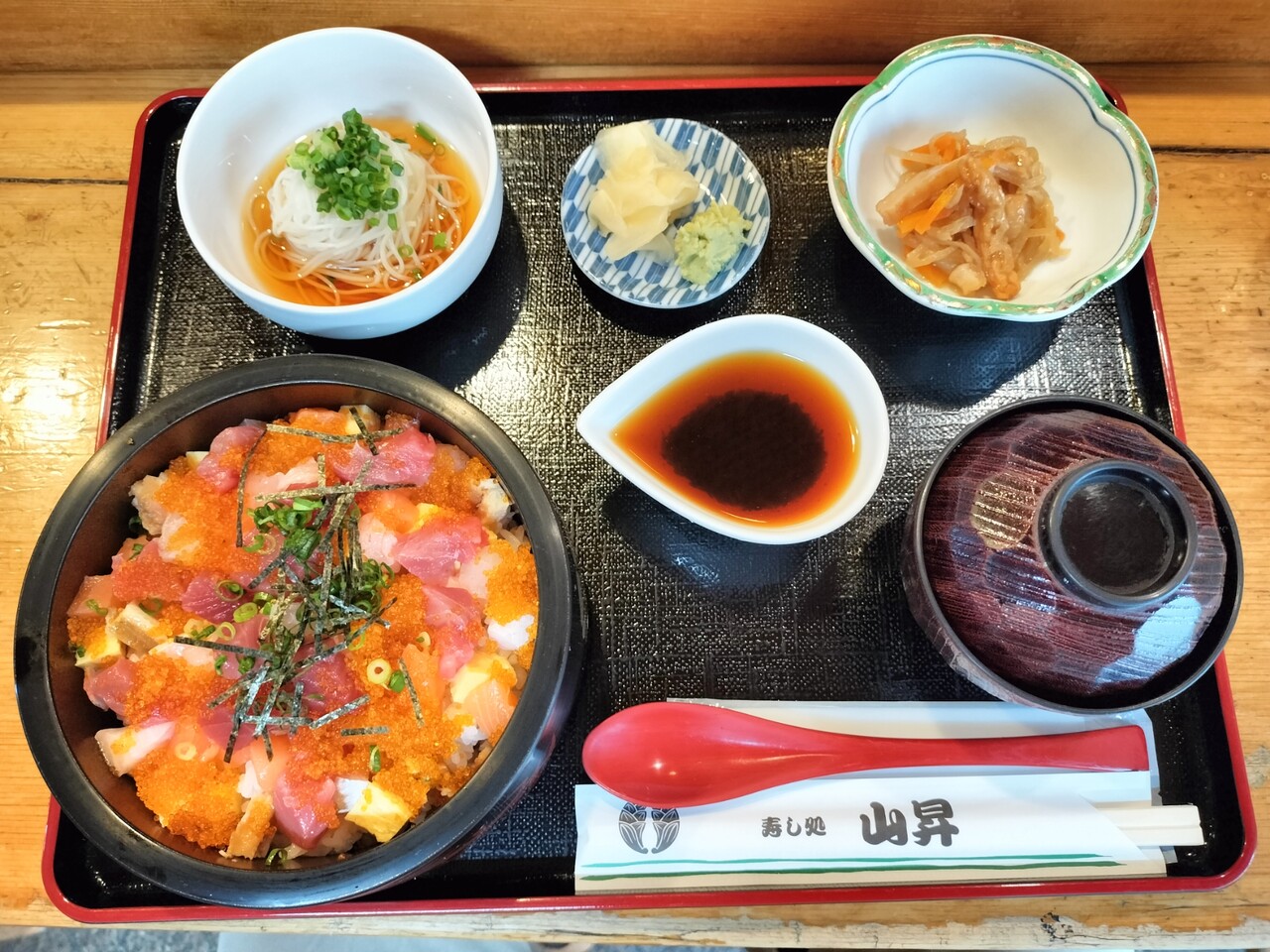 山昇さんのランチに伺ったら 選択肢はコレしかないよねって事で 「がごとろ」ぶっかけ!海鮮バラちらしセット(¥1,200)をオーダー致します