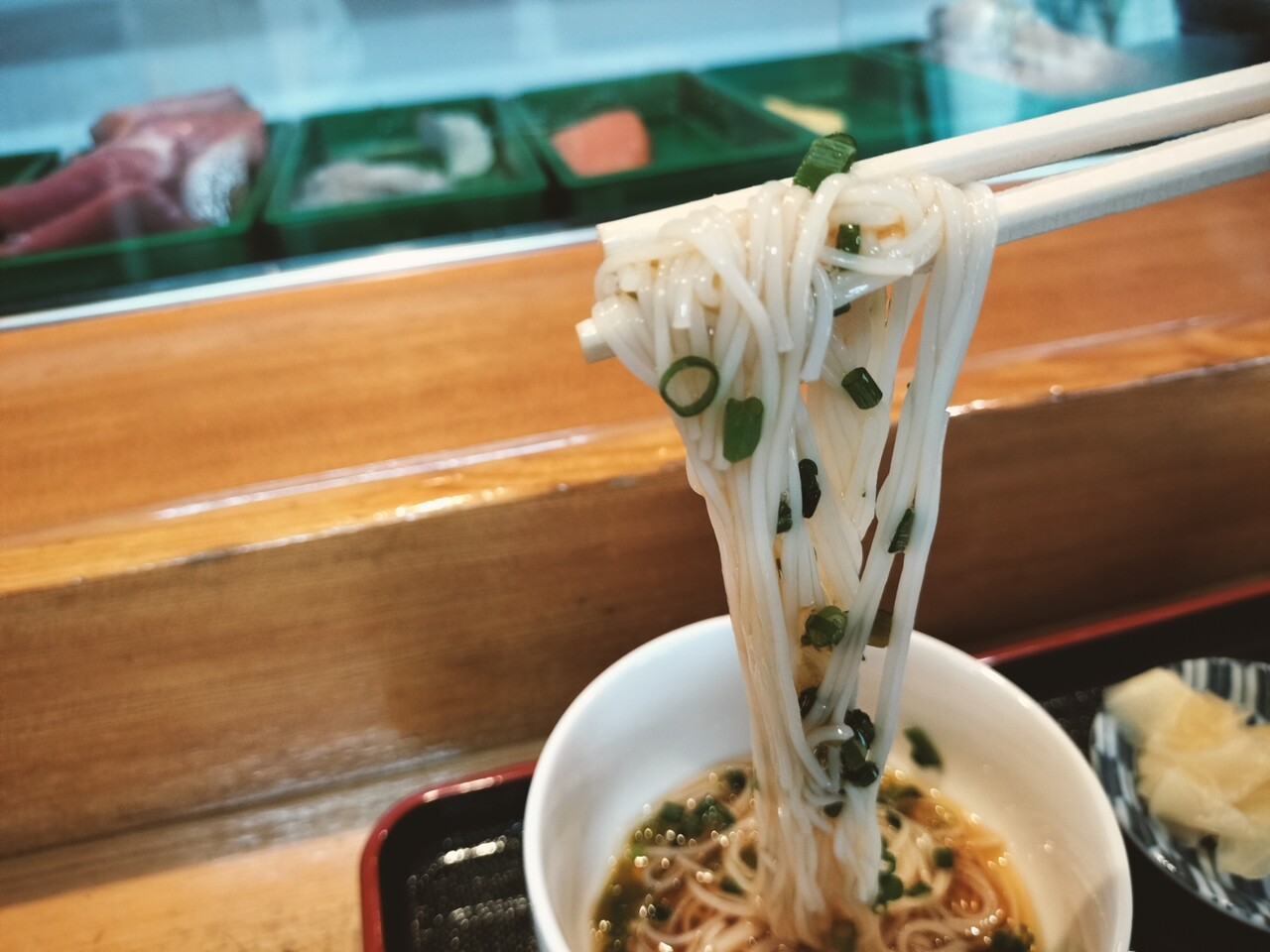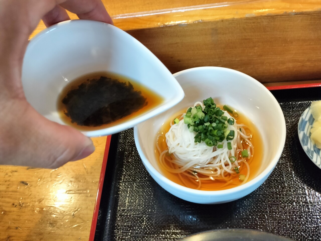 途中ソーメンも食べたくなりまして ネバネバのタレをソーメンにもぶっ掛けます