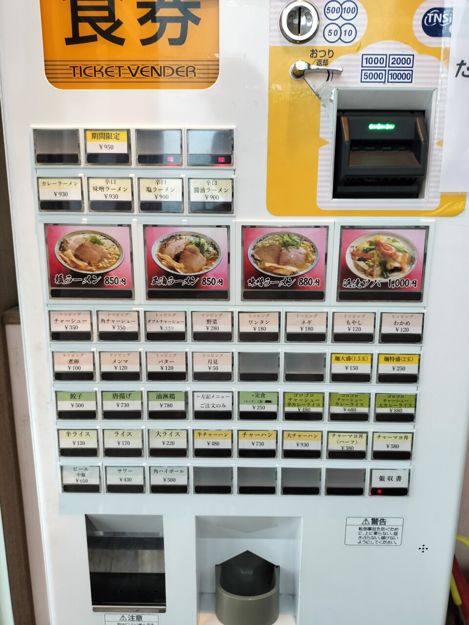 早速入店しまして食券機でチケットを購入しますが…