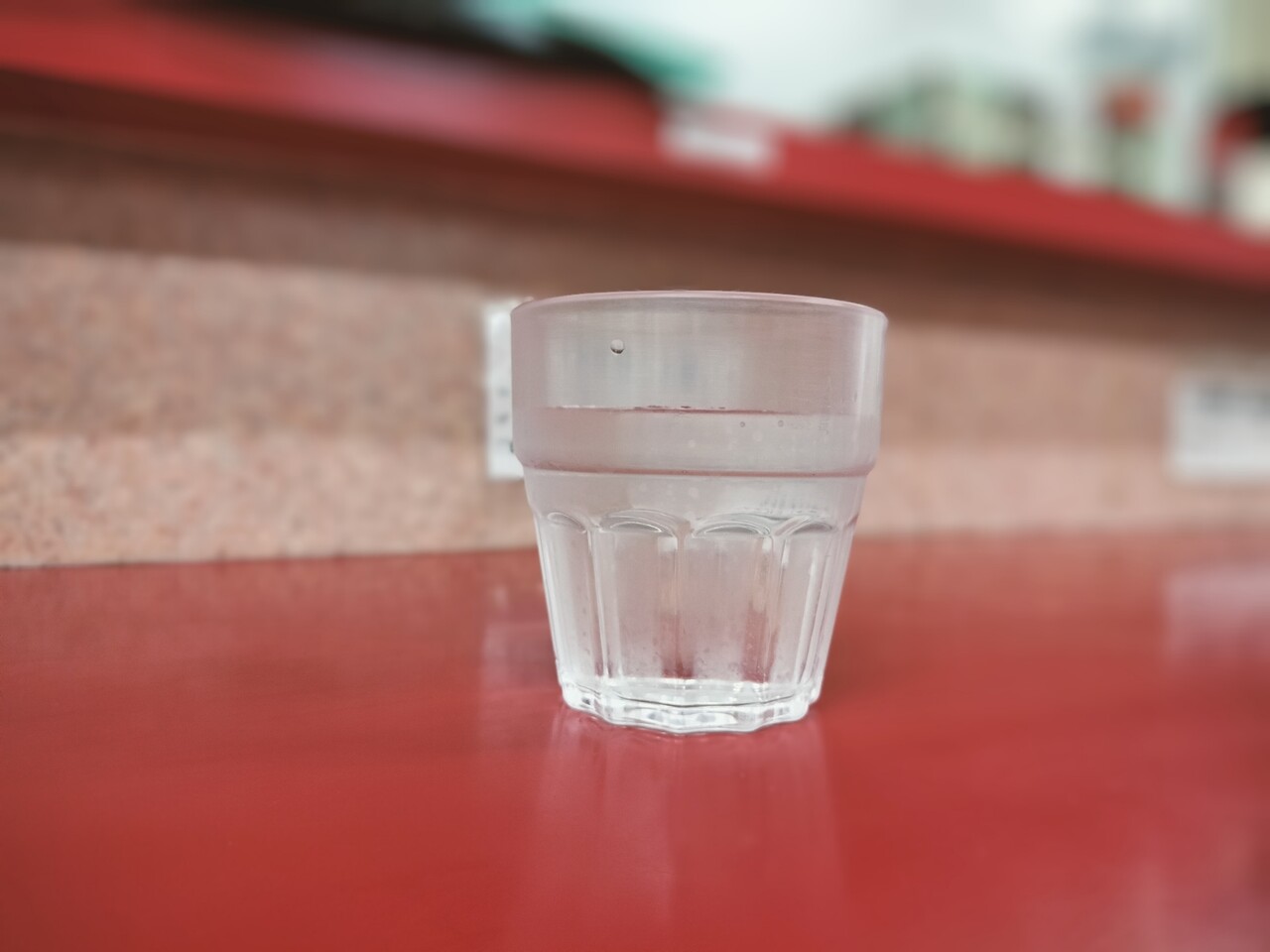 席につきましてチケットを渡してお水をセルフって数分