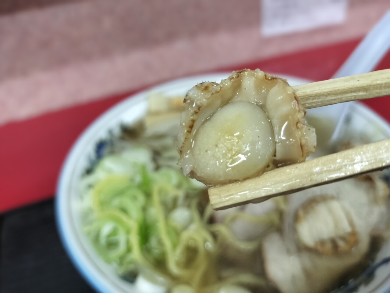 鹿部産ホタテ(稚貝)たっぷり塩ラーメン が運ばれてきました
