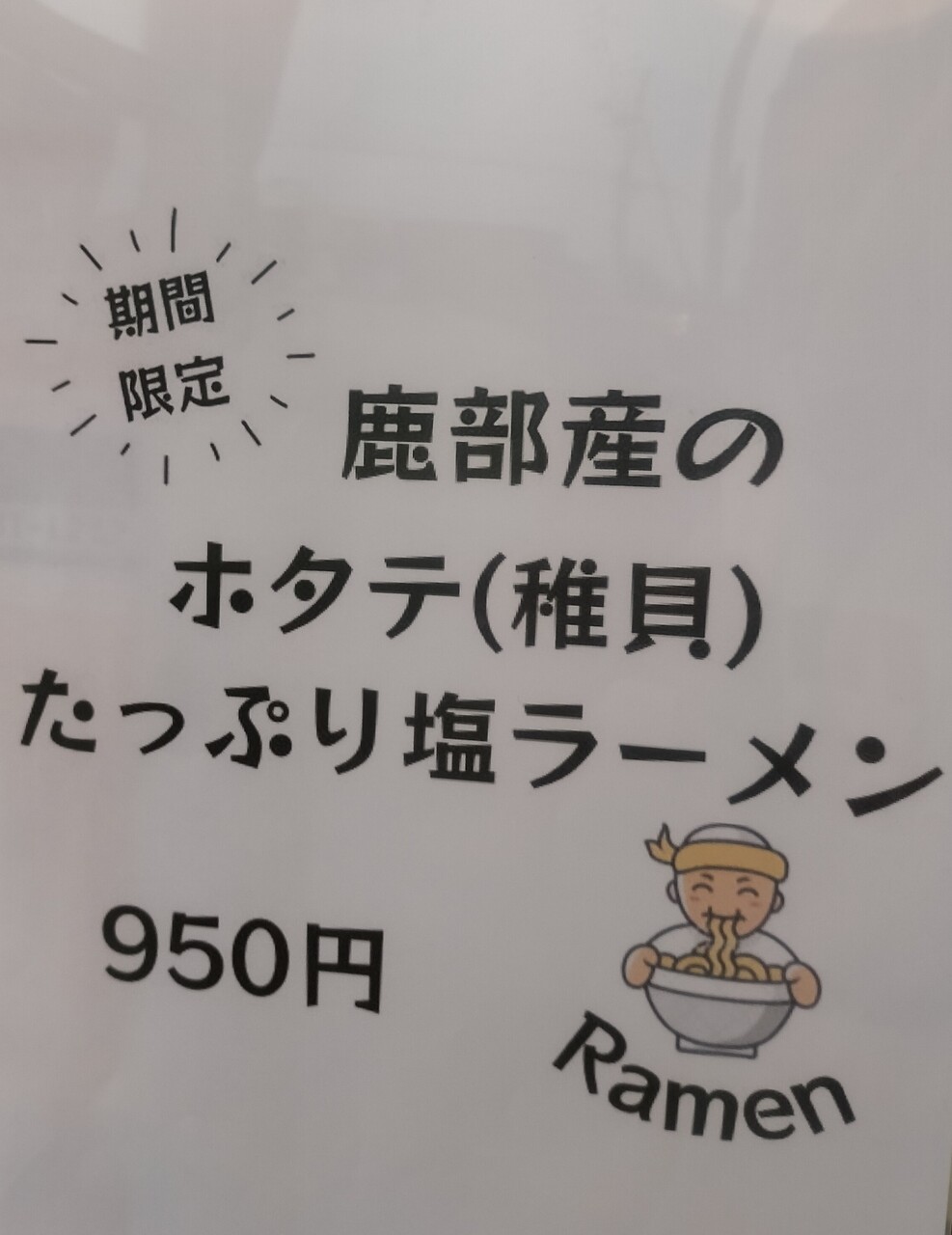 期間限定の 鹿部産ホタテ(稚貝)たっぷり塩ラーメン (¥950)これが気になりましたのでこちらのチケットを購入します