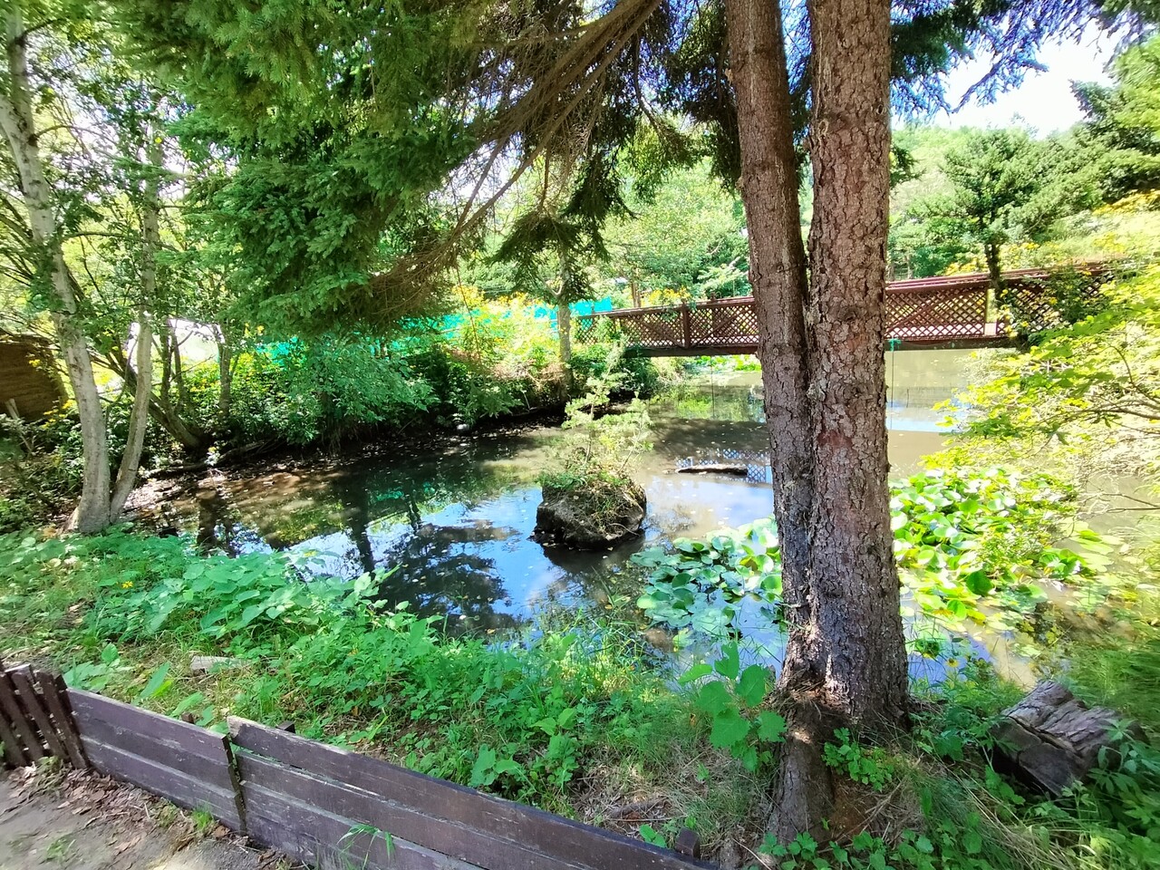 ソフトクリームを食べた後に敷地内の池を覗くと鮒?が泳いでおり