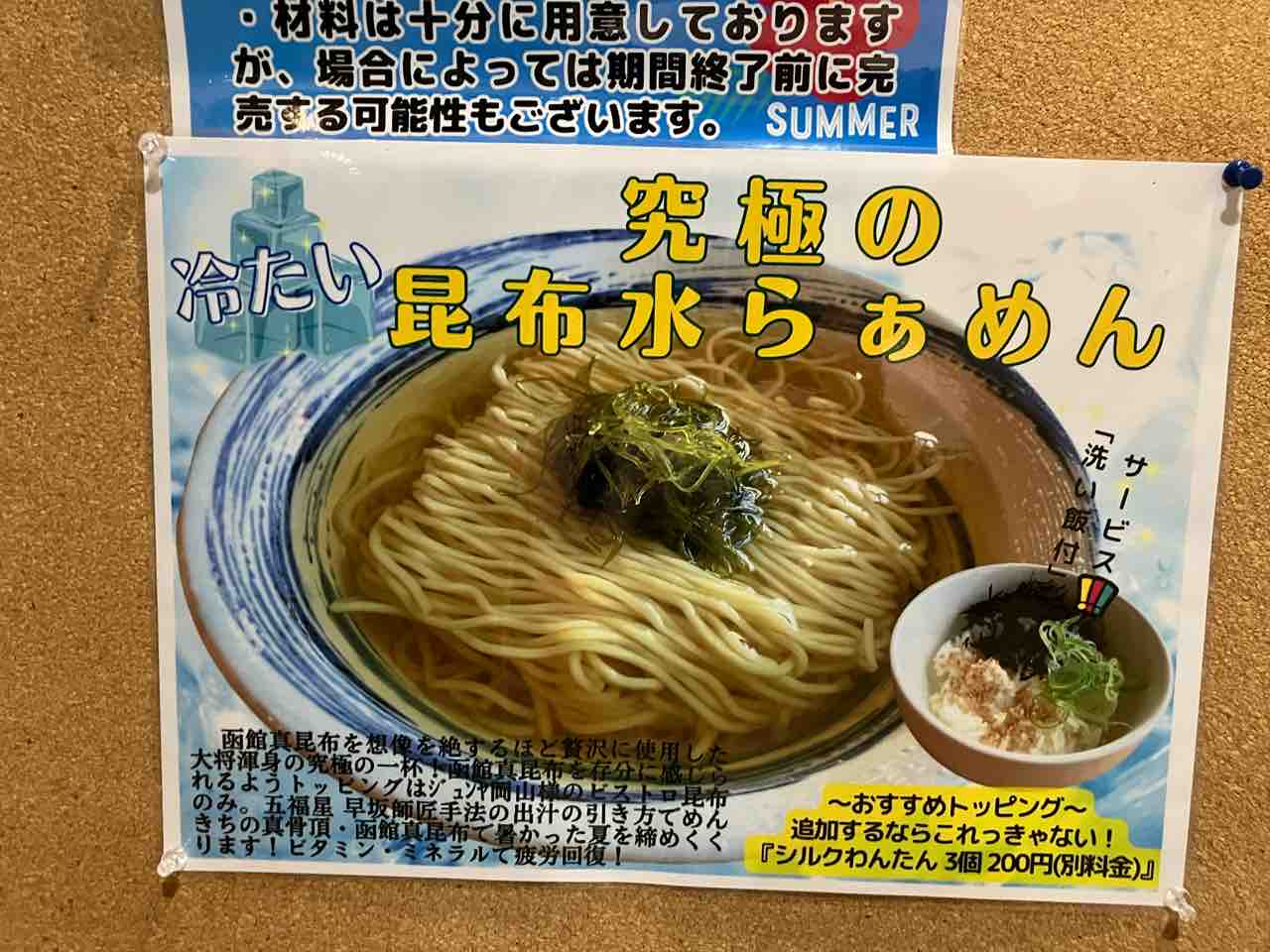 冷たい昆布水らぁめんを期間内に食べることができてよかったです