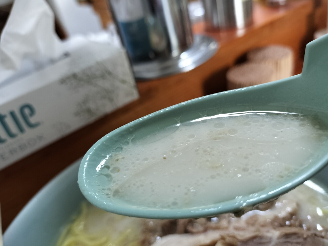 乳白色濁りありのスープも頂くと 豚骨の香りが口の中に広がるのですが 臭みと脂っこさがなく サッパリ頂ける バリ美味スープ