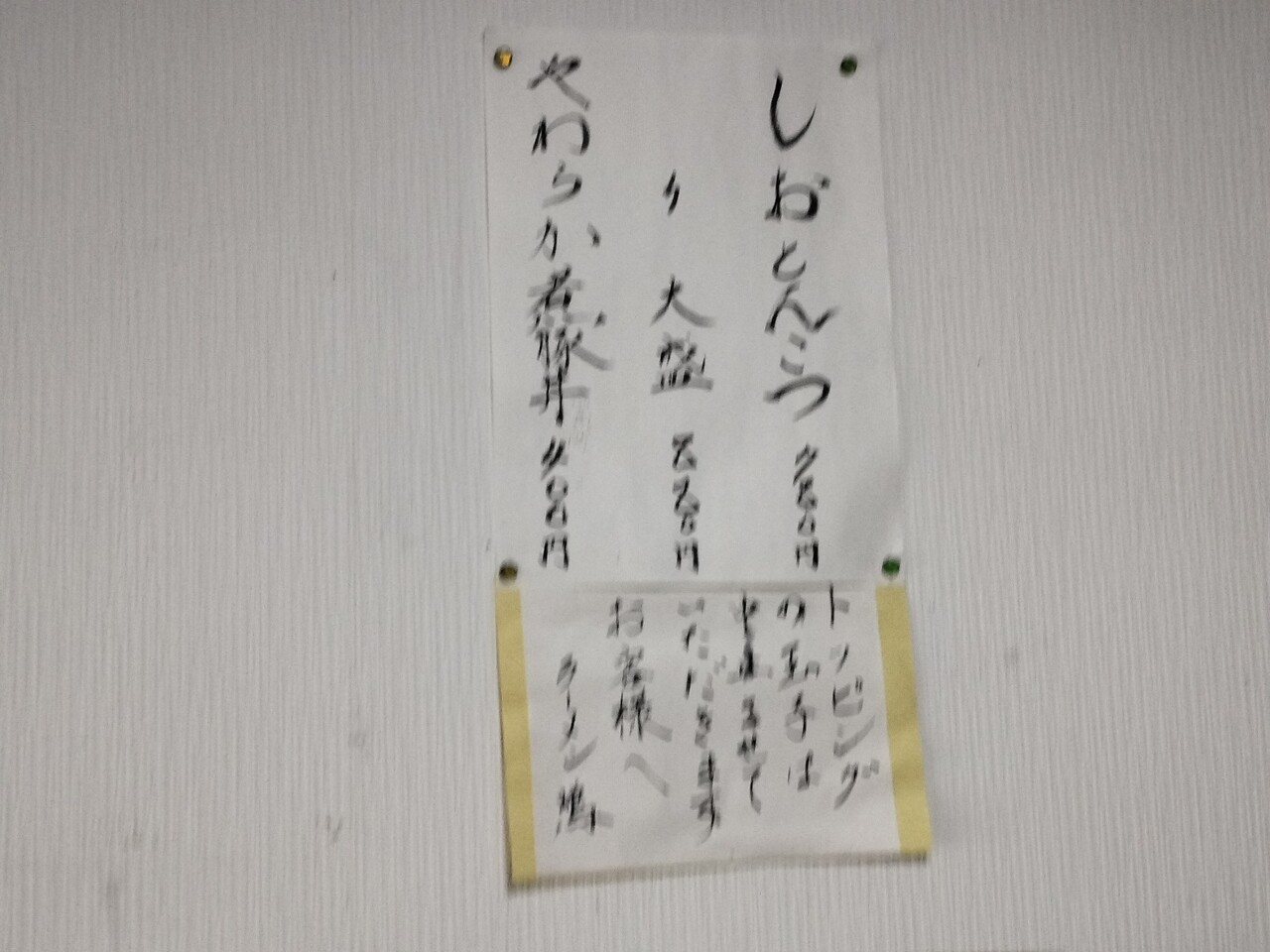 今回は しおとんこつ 大盛(¥880)をオーダー致します