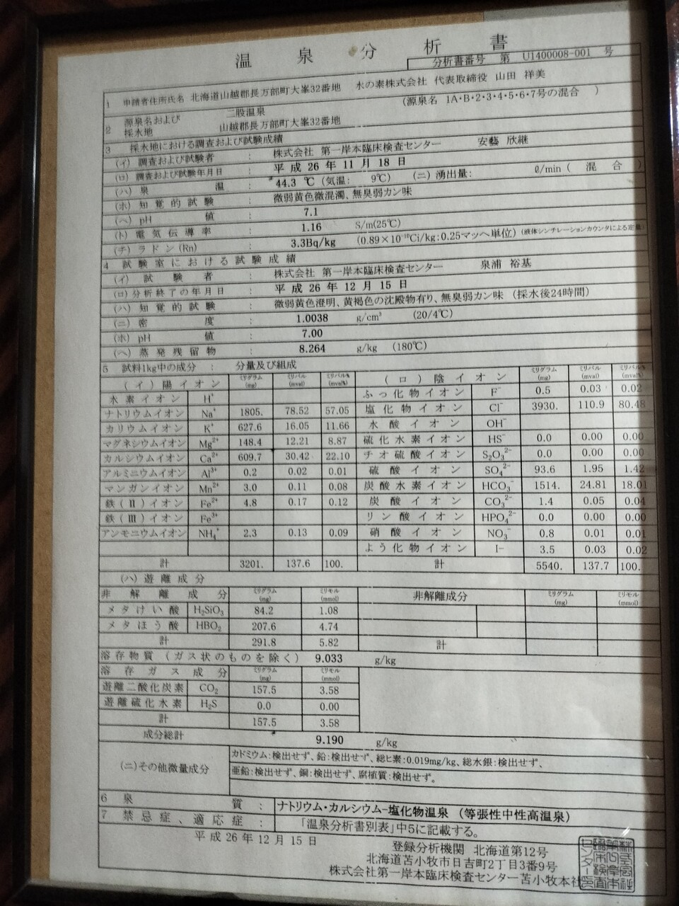 温泉分析書