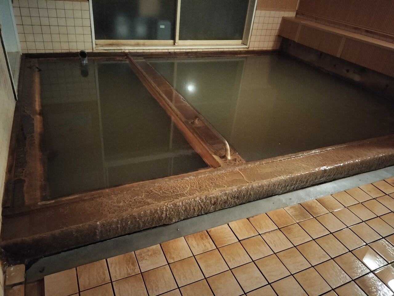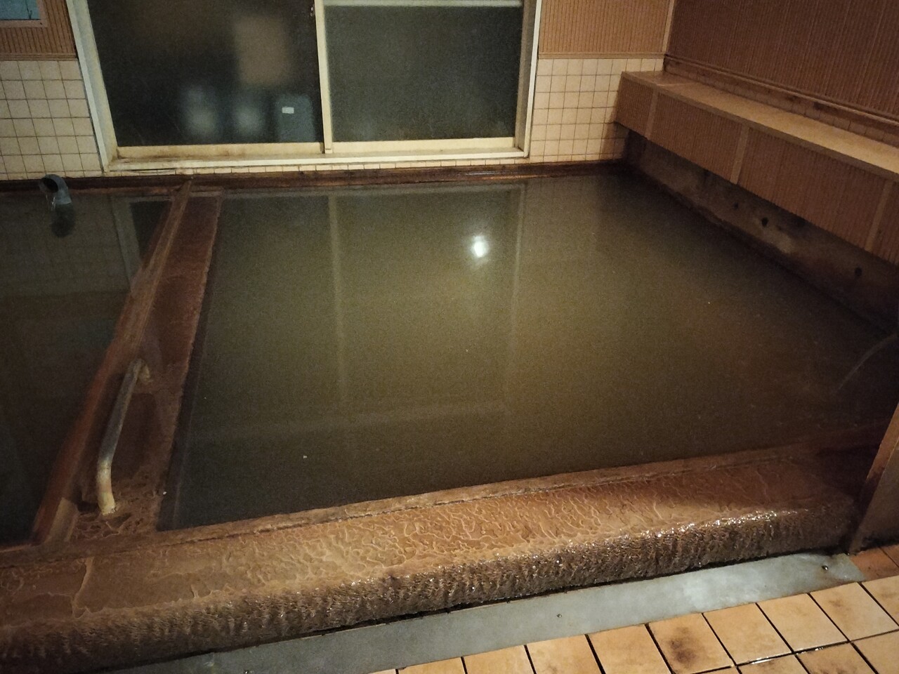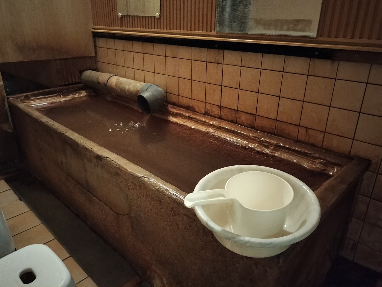 温泉に浸かると結構深い浴槽で知らないと驚くかもしれません