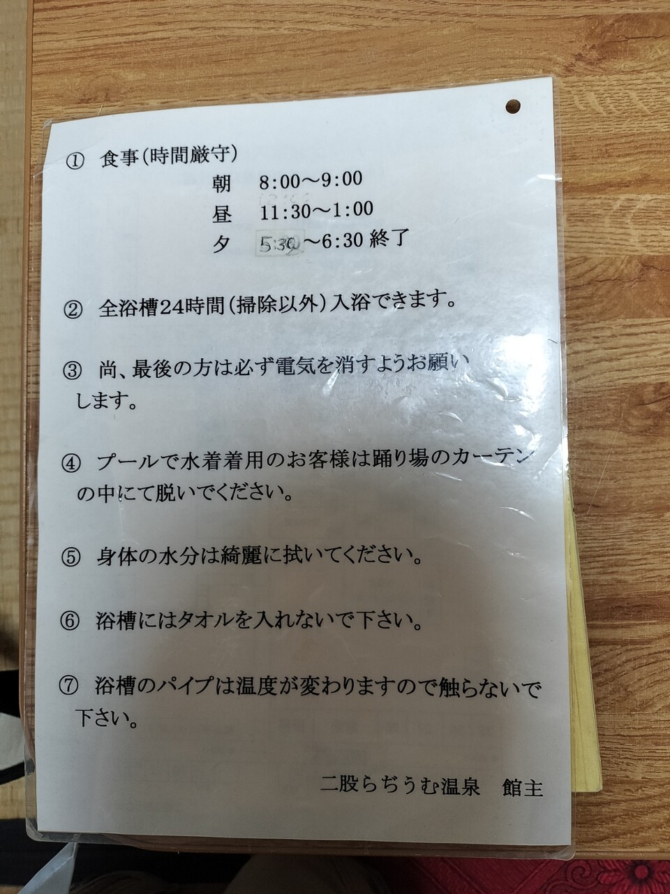 テーブルには施設の注意事項が置かれておりました