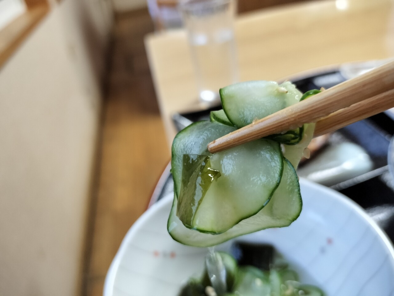 胡瓜とワカメの酢の物 塩っぱいもの食べた後の 酢の物はアクセントとして良い