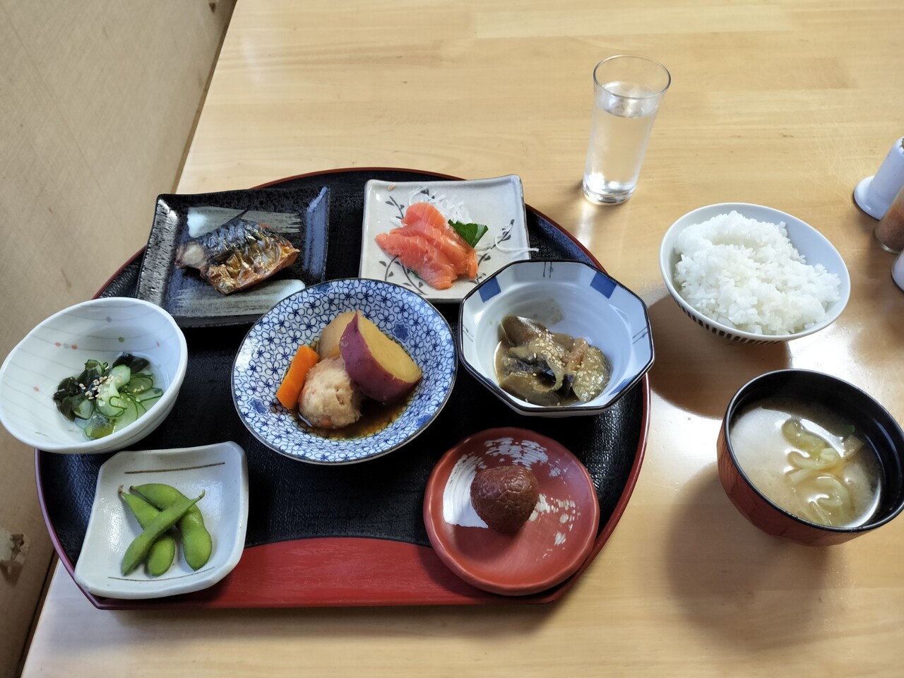 お水とご飯と味噌汁はセルフとなっております