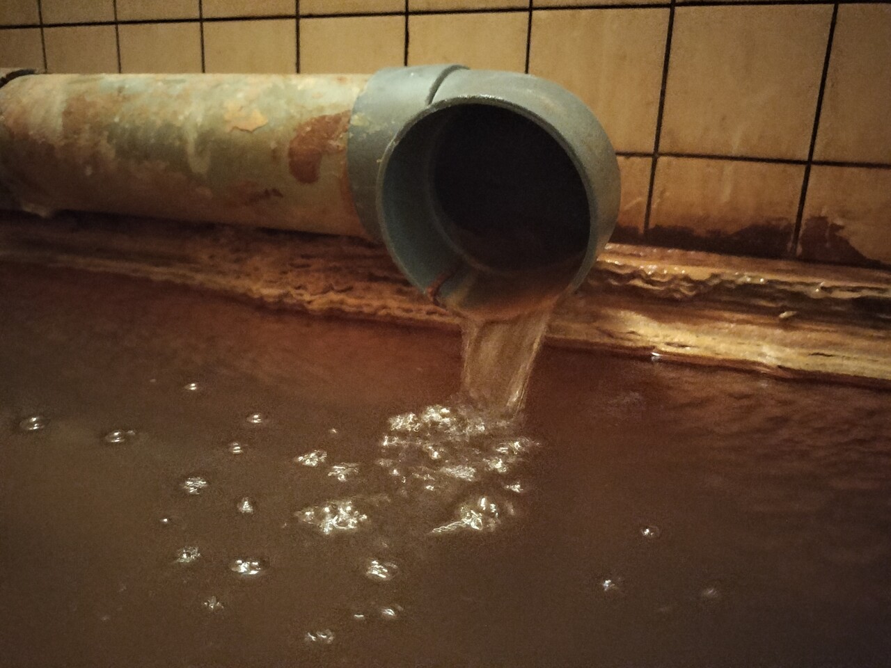 温泉は黄土色した微濁な湯で水面には温泉成分が沢山浮いております