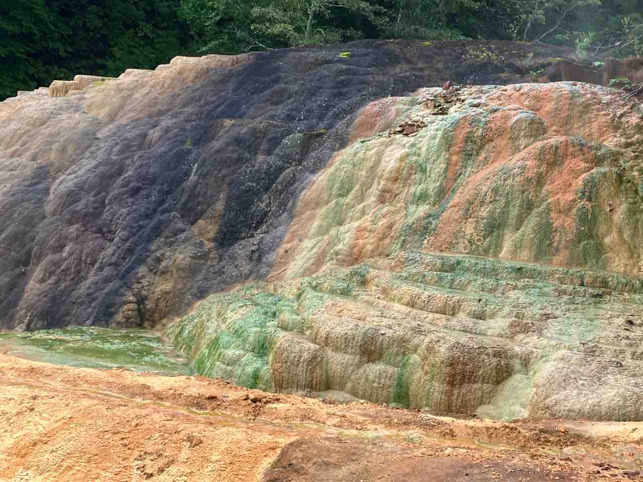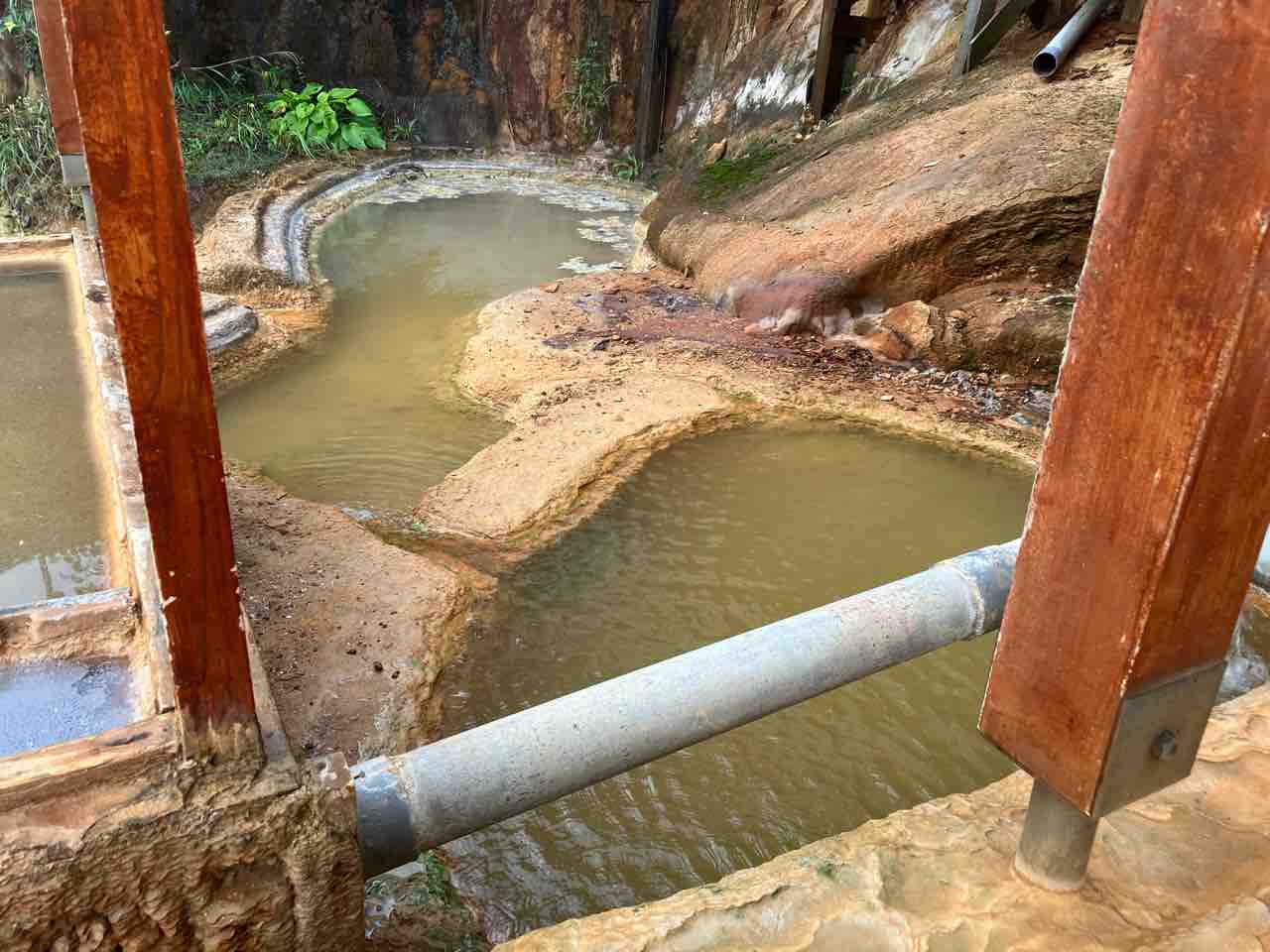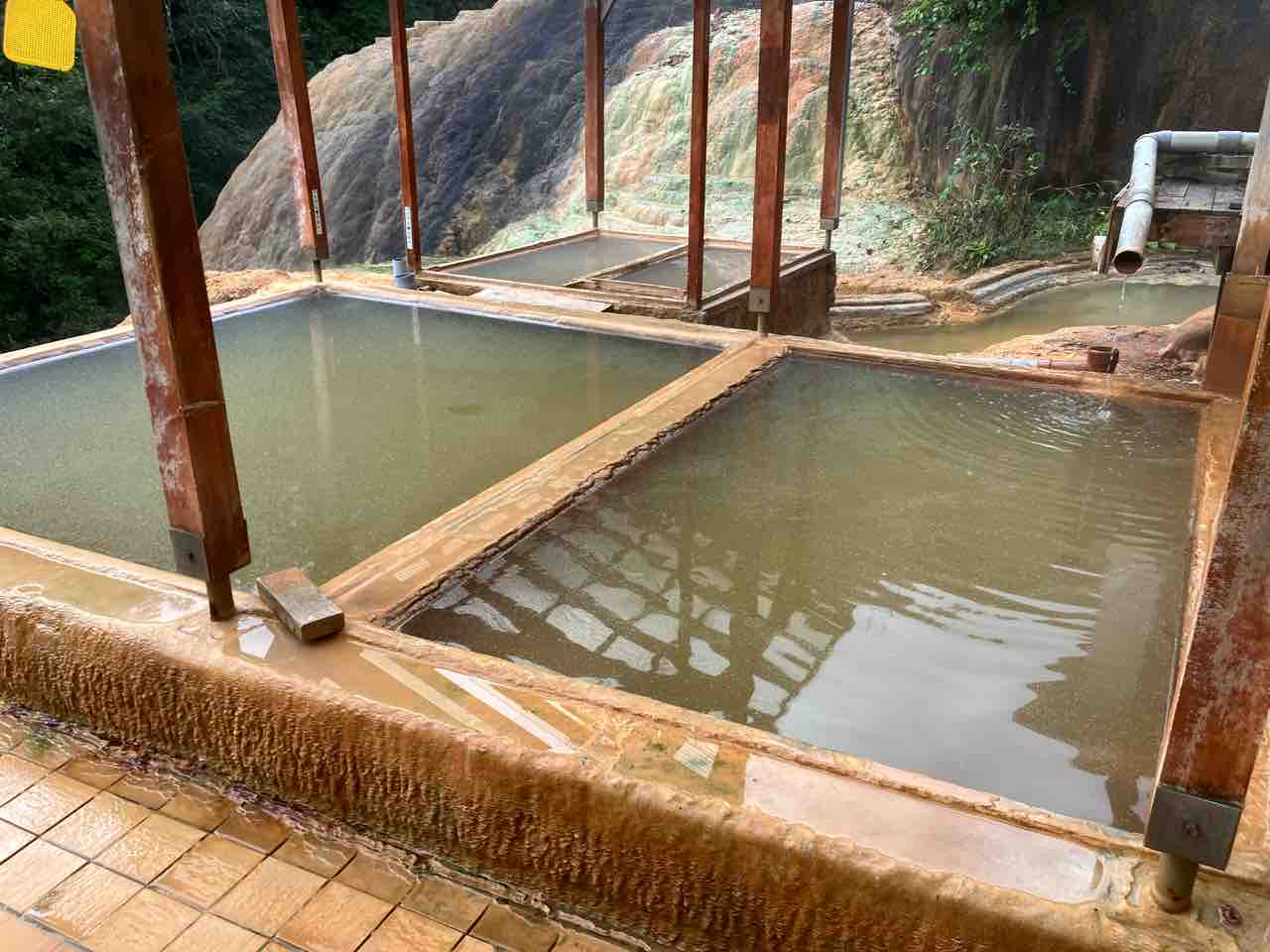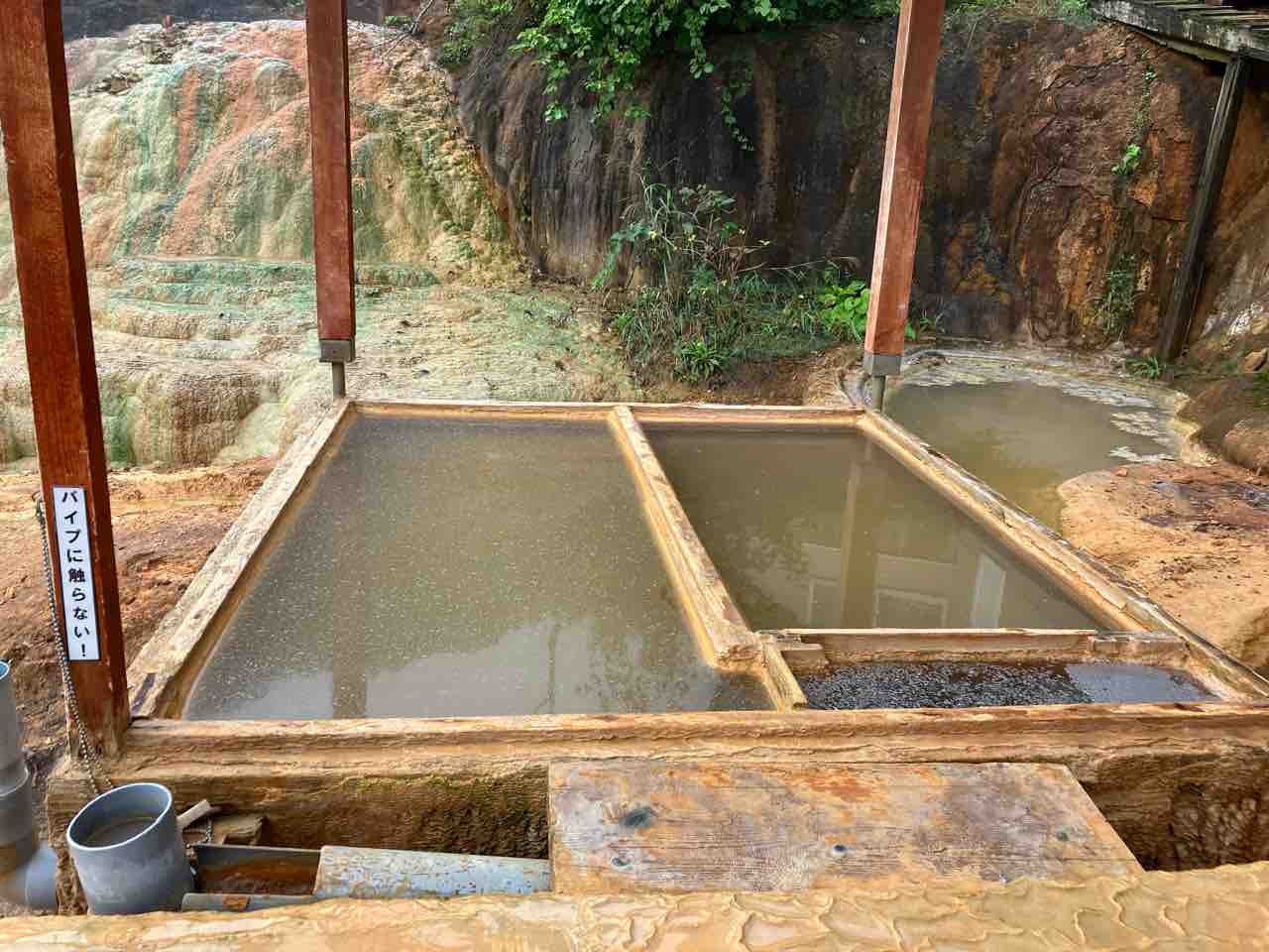 辺りを見渡すとオーバーフローした湯が下へ落ちて行き