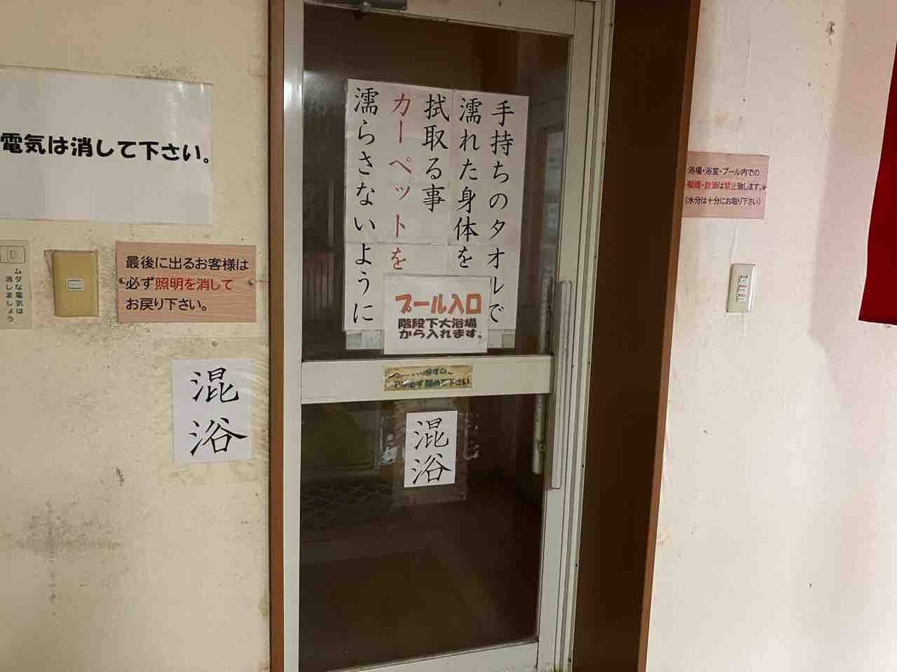 浴場へのドアです(注意書き有)