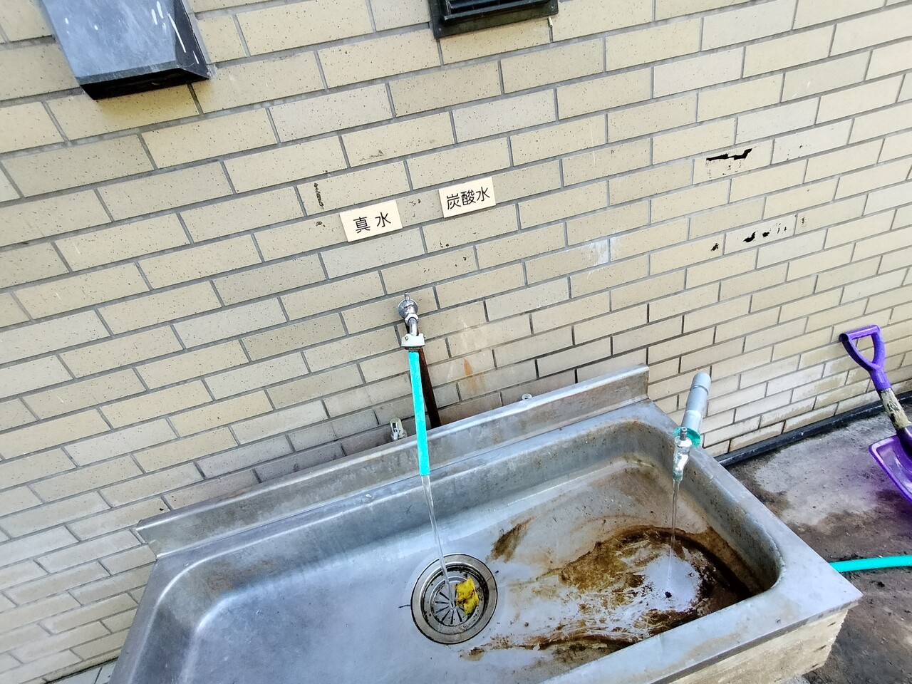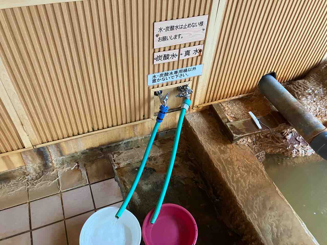 施設の入り口横には 湧水と炭酸泉のホースがあり そんなの見ちゃうと…
