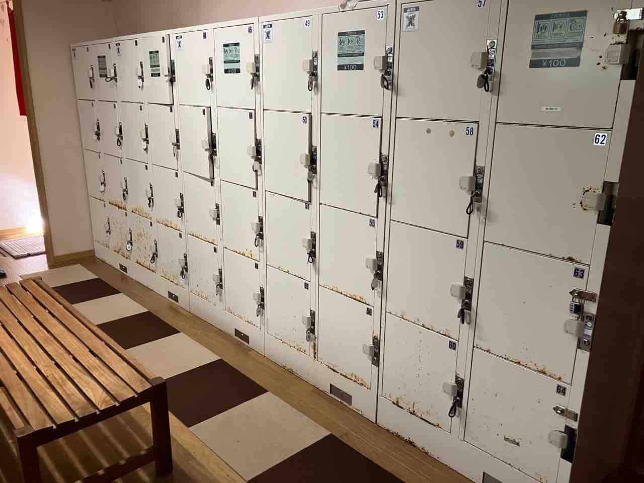露天風呂(混浴)は小風呂の向かいにあり脱衣所にはロッカー有