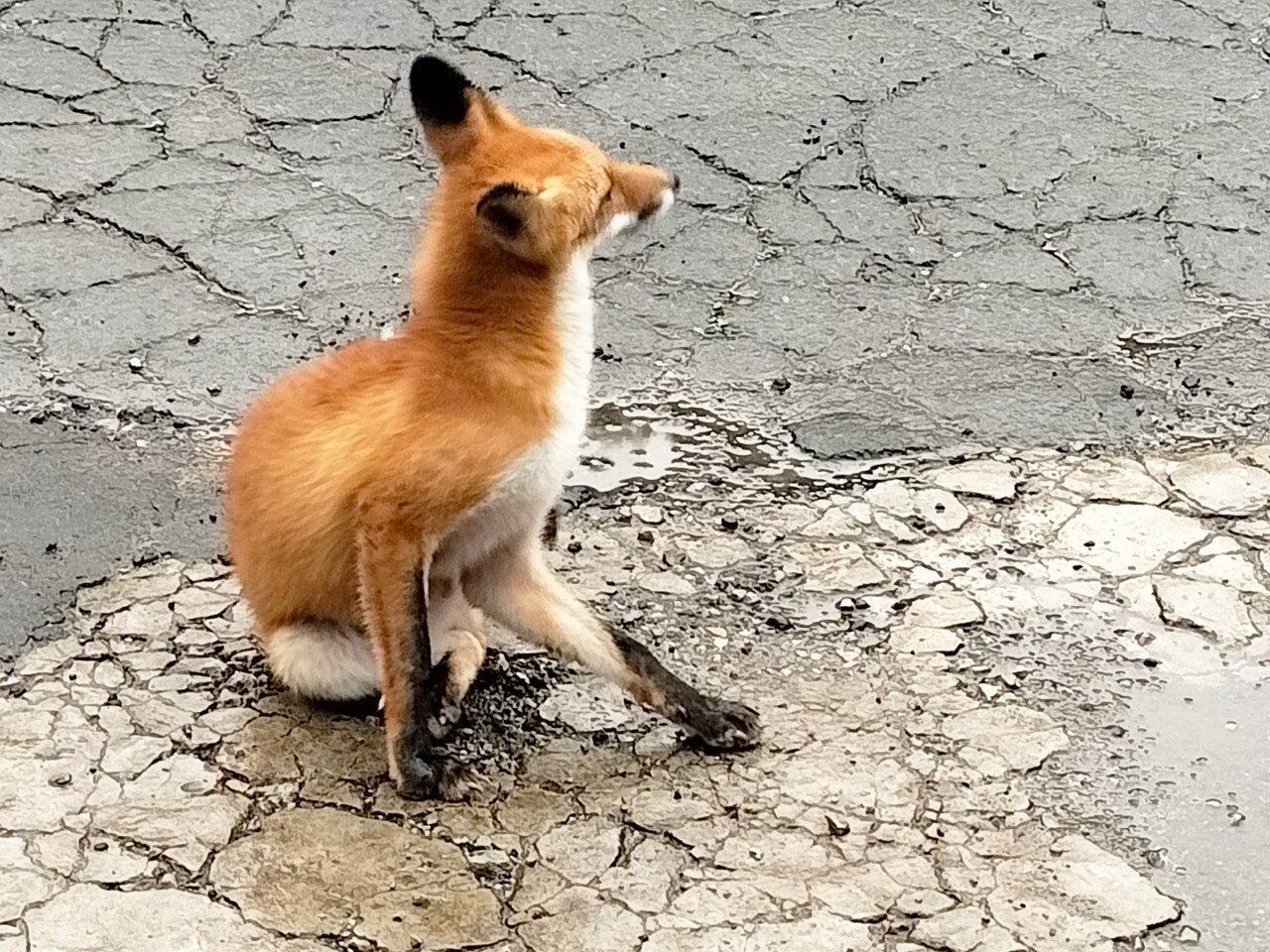 車に乗ろうとすると 狐が近くに寄ってきて人に慣れているなぁと