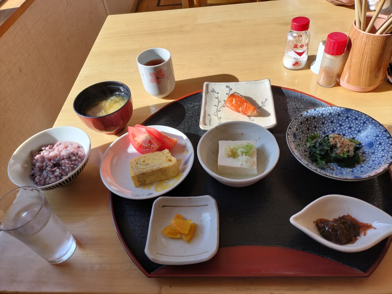 ご飯、お粥、味噌汁、お茶、水(湧水)は夕食同様セルフサービスとなります